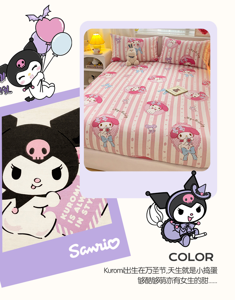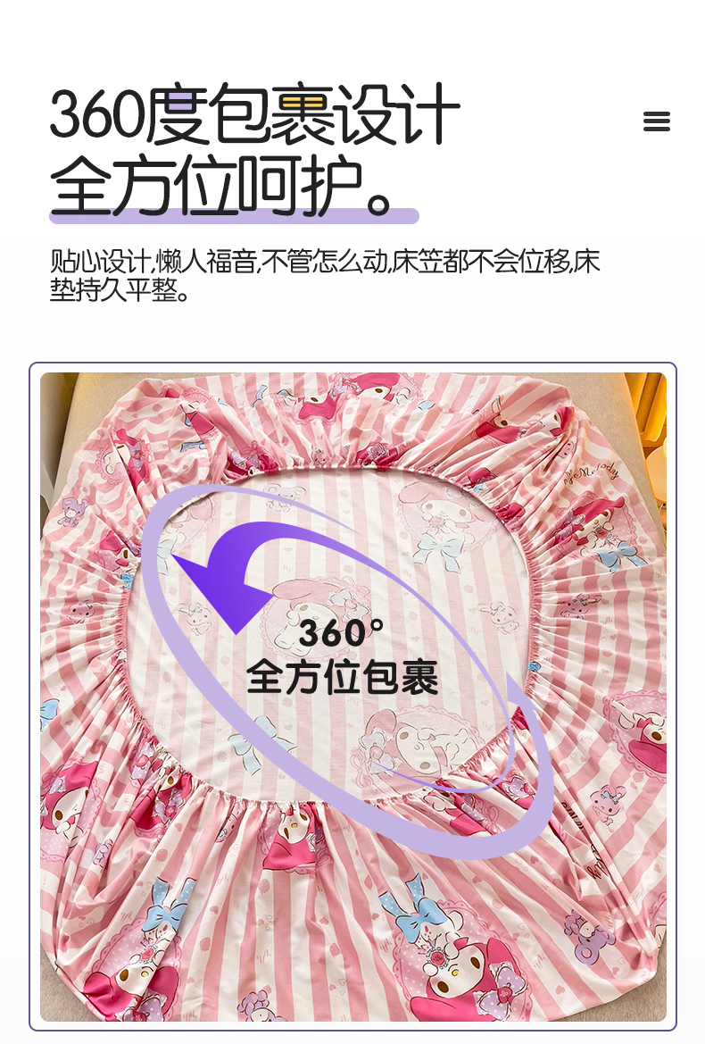 • 91家纺网 家纺一手货源 找家纺 名兮家居 2024新款正版授权经典奥特曼-三丽鸥全棉印花床笠【含防伪标】 竖条美乐蒂