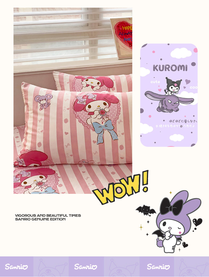 名兮家居 2024新款正版授权经典奥特曼-三丽鸥全棉印花床笠【含防伪标】 竖条美乐蒂