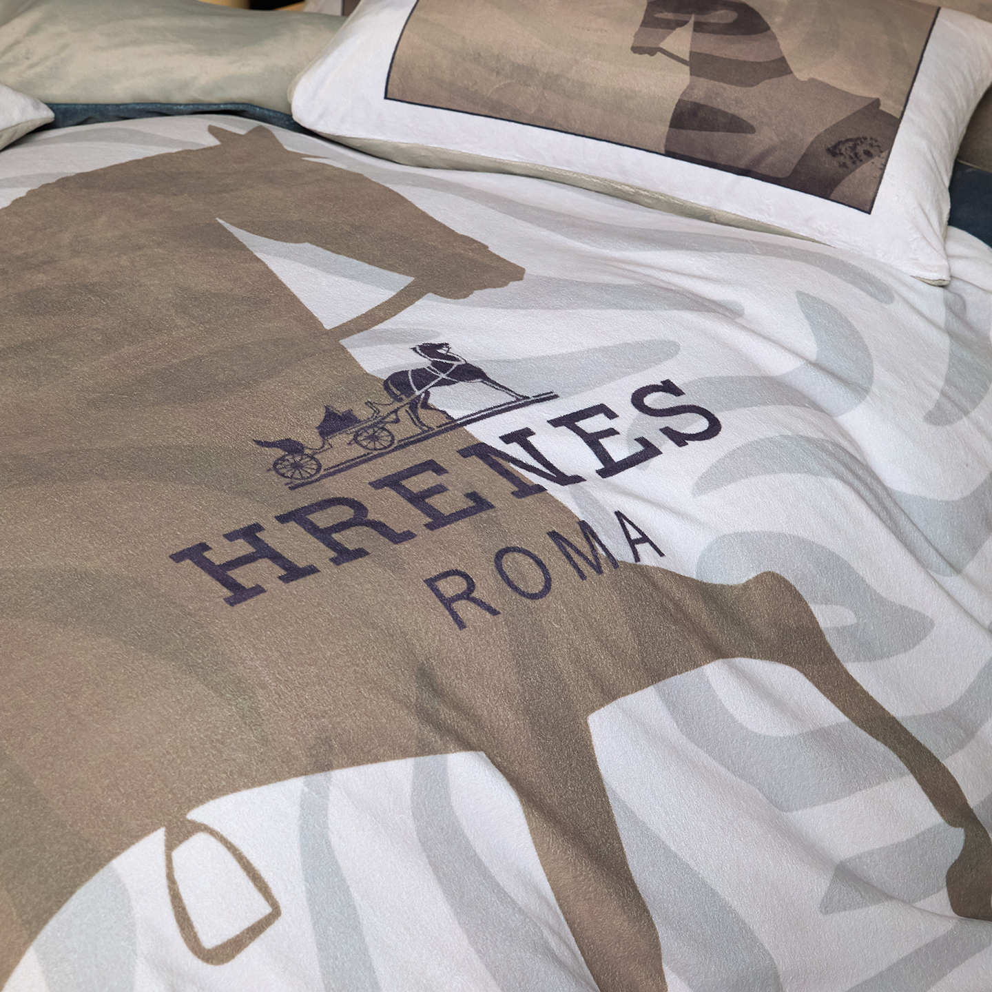 新方向 2025A类丽丝绒+全消光牛奶绒四件套-奥弗恩-浅灰