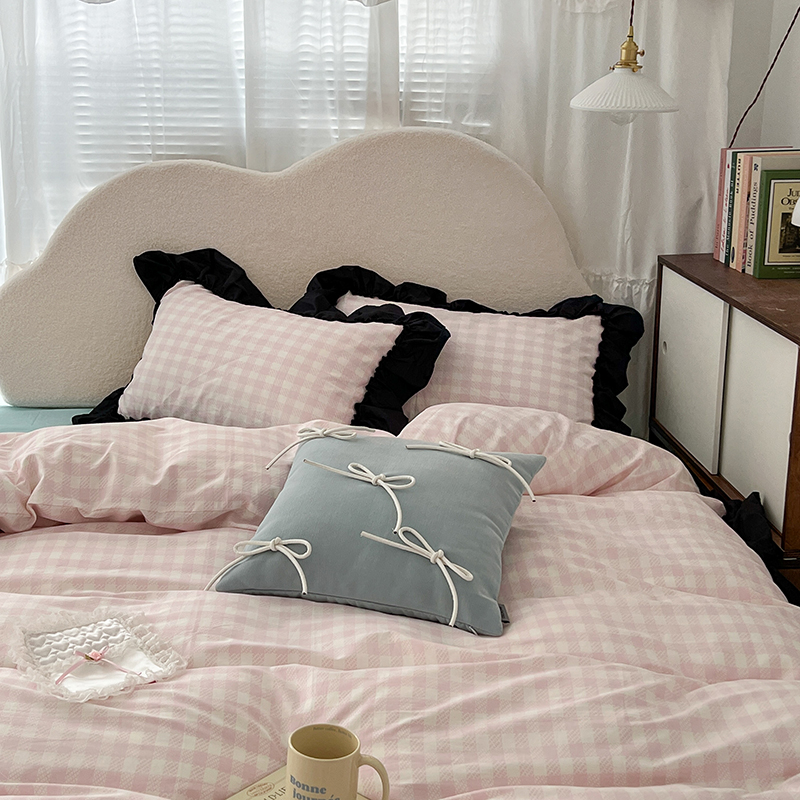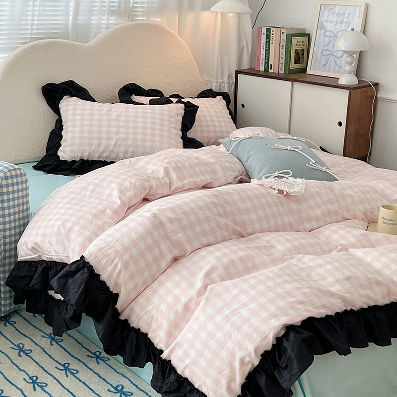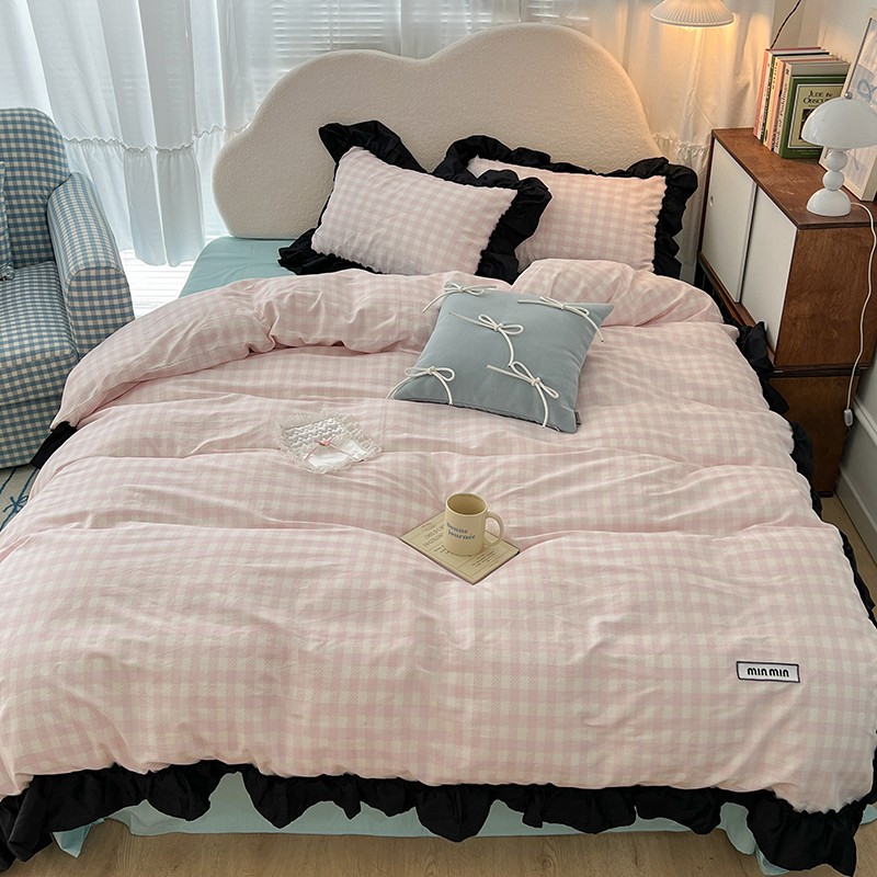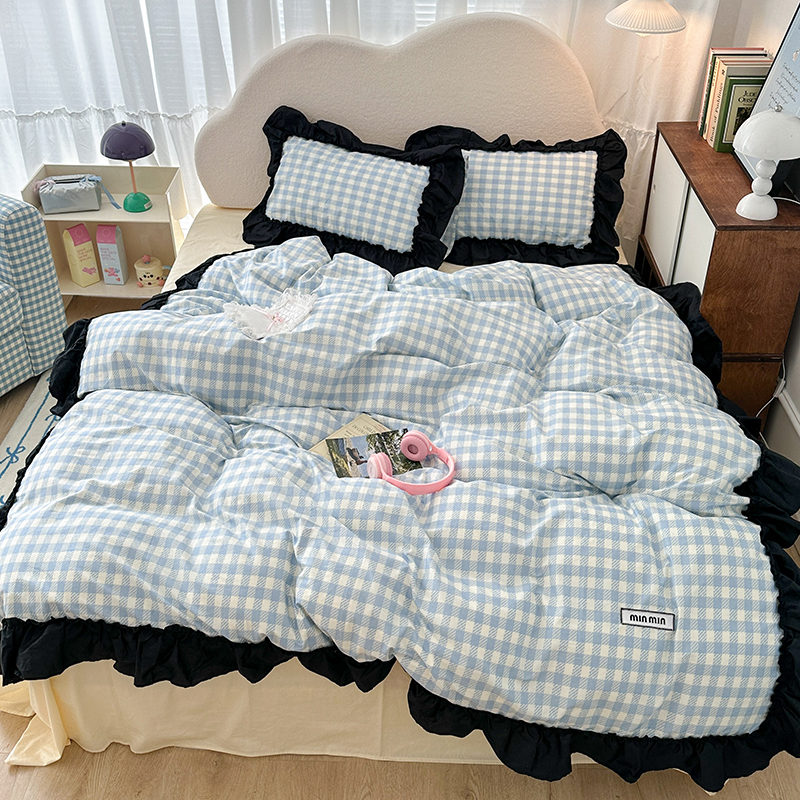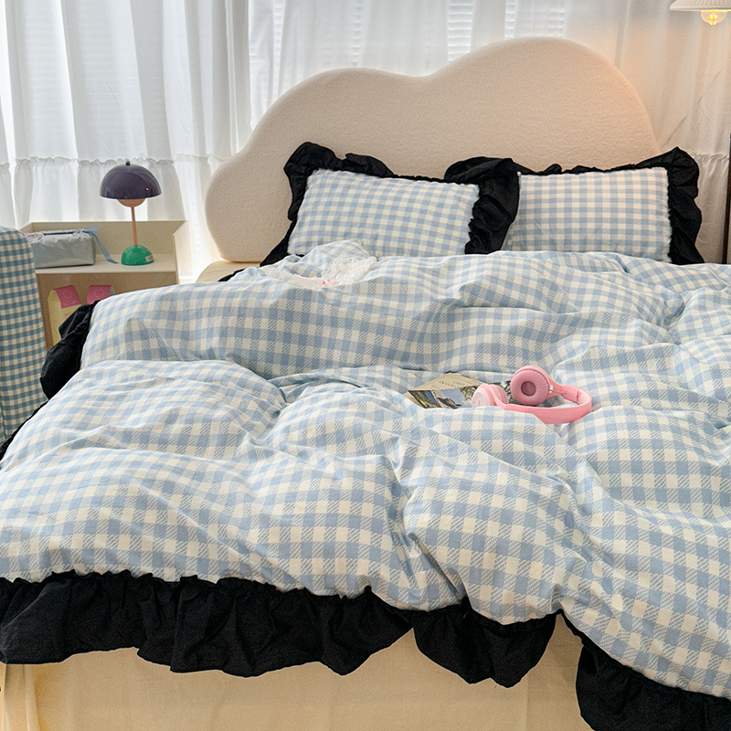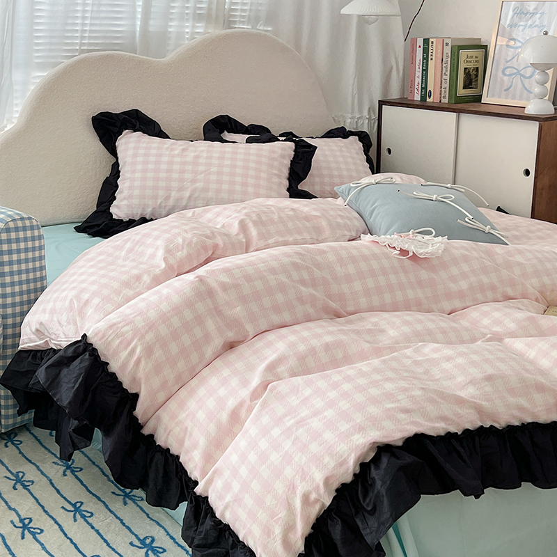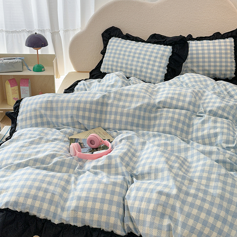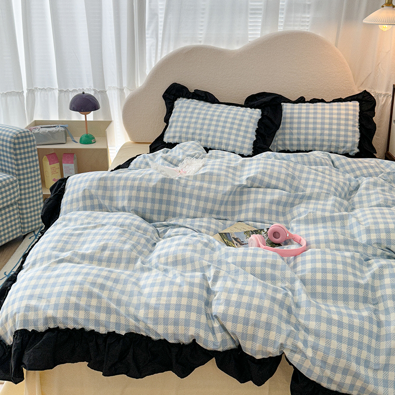 (总)昔可家纺 2024黑色贴边花边款格子系列四件套