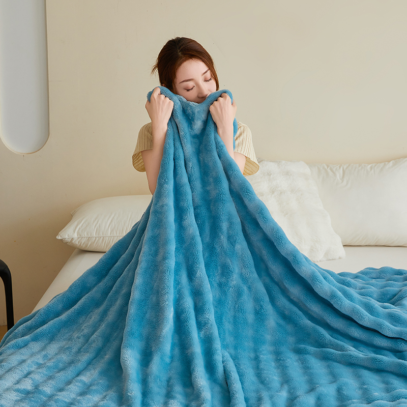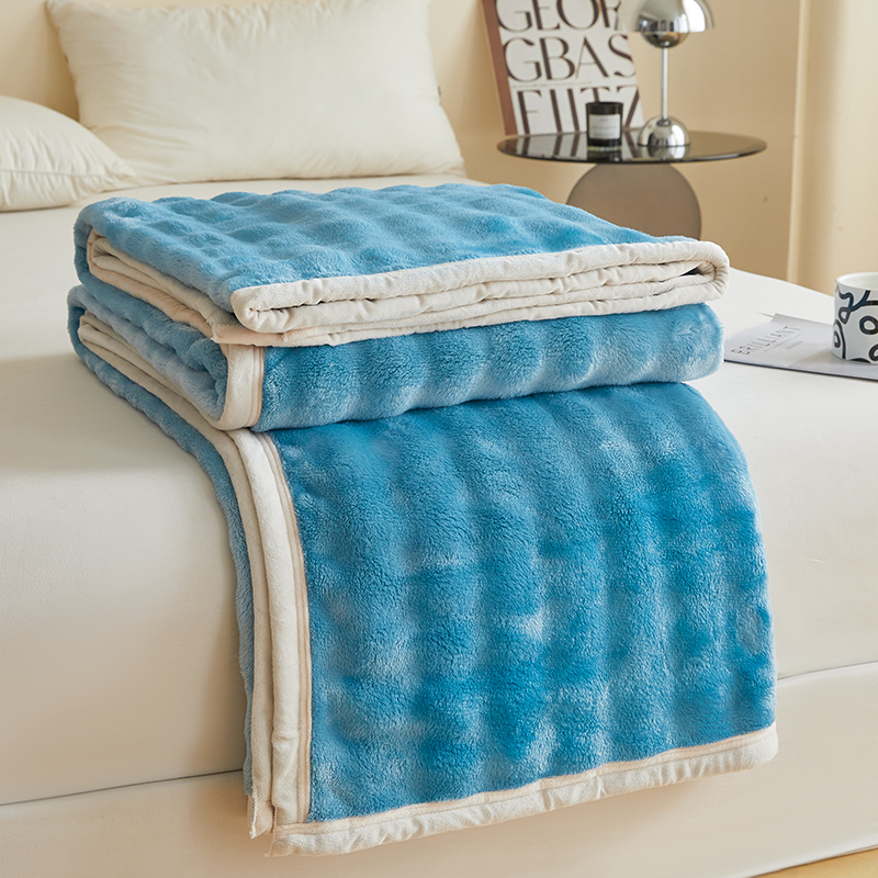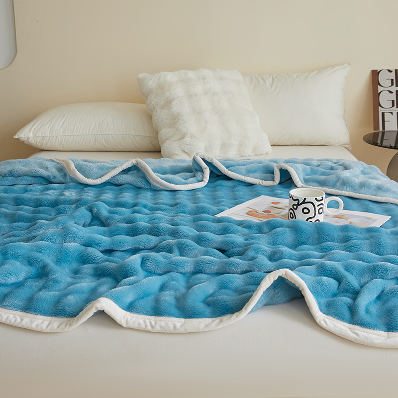 千荨 2024新款高克重兔绒泡泡系列毛毯 泡泡-天蓝