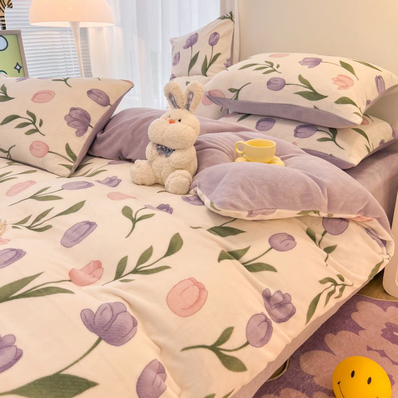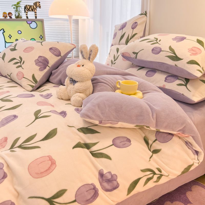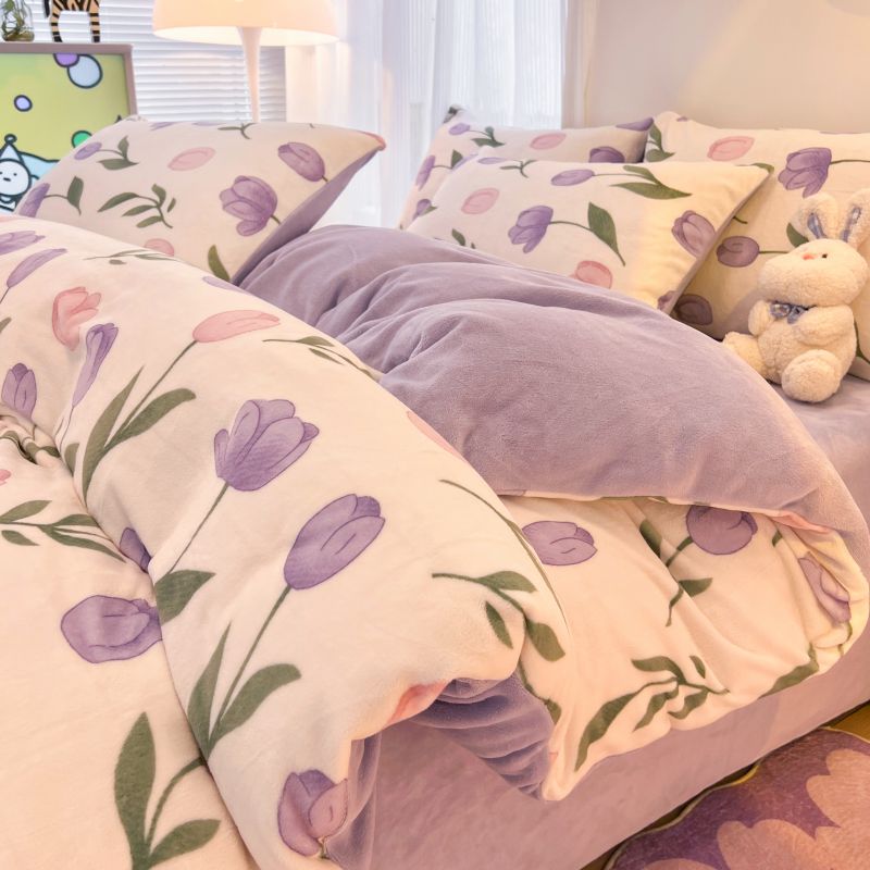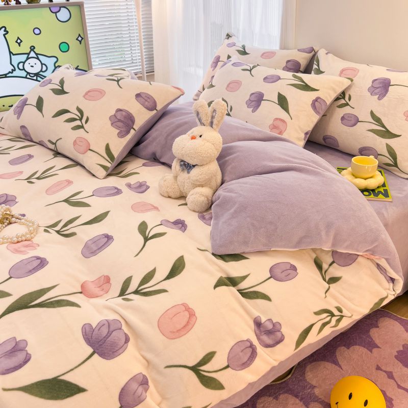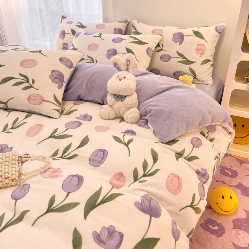 商品名称:2024新款原创白色小清新场景牛奶绒单被套 紫色郁金香