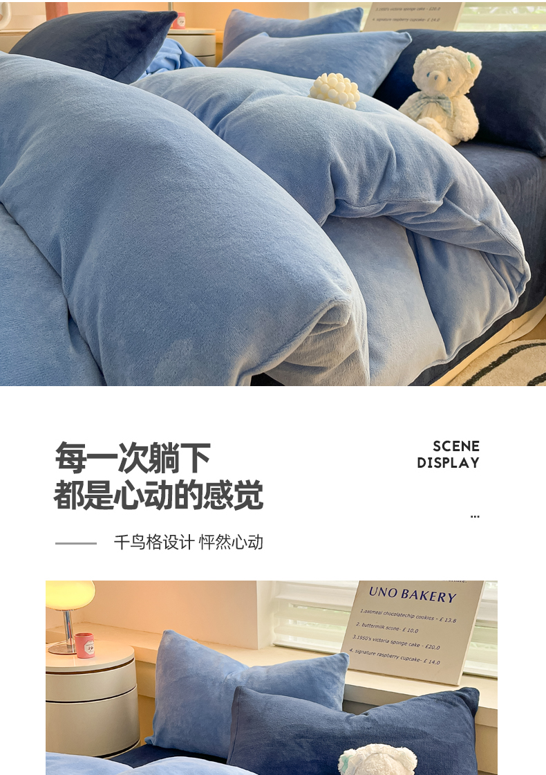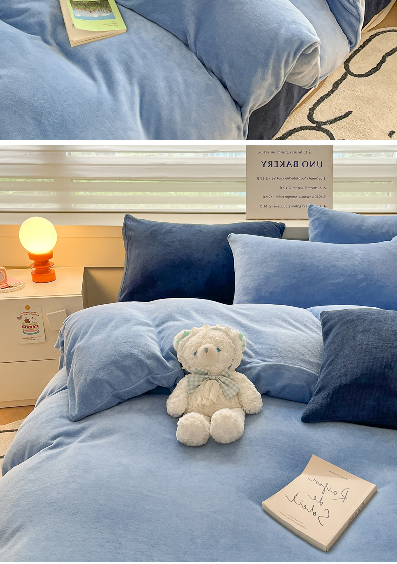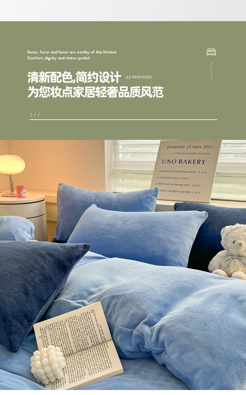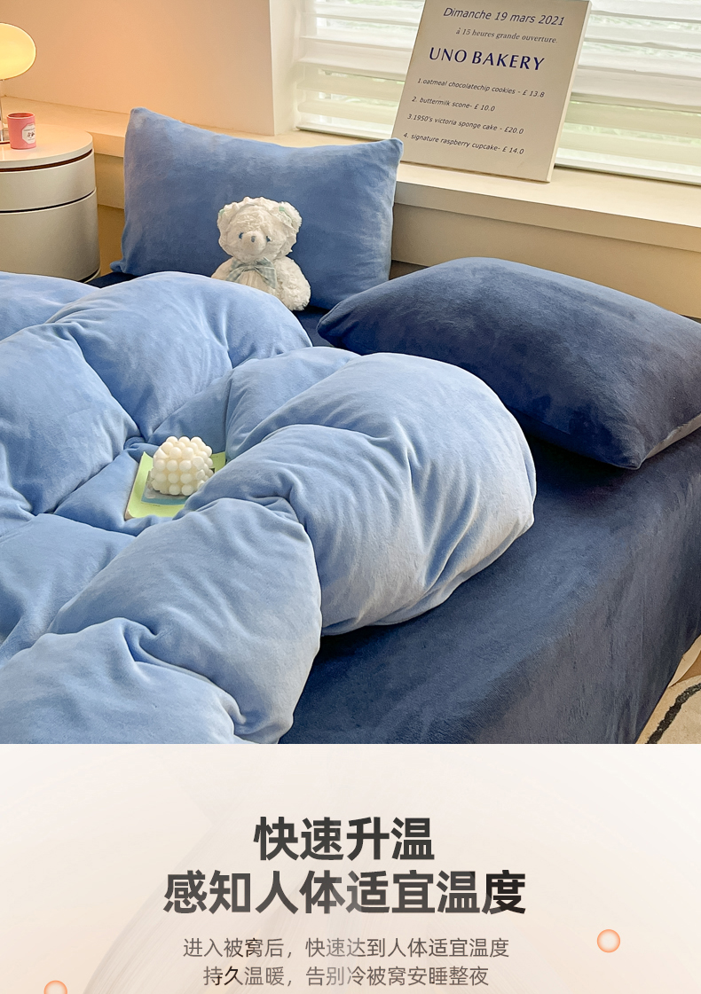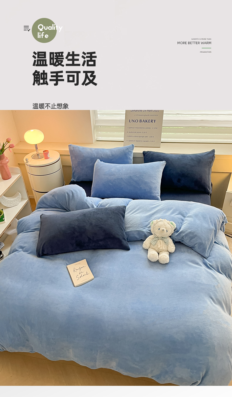 当前位置: 91家纺网 > 商品网购 > 床品套件 > 四件套 > 牛奶绒四件套 > 三朵家纺 2024新款加厚保暖牛奶绒混搭系列四件套 琉璃蓝-蓝