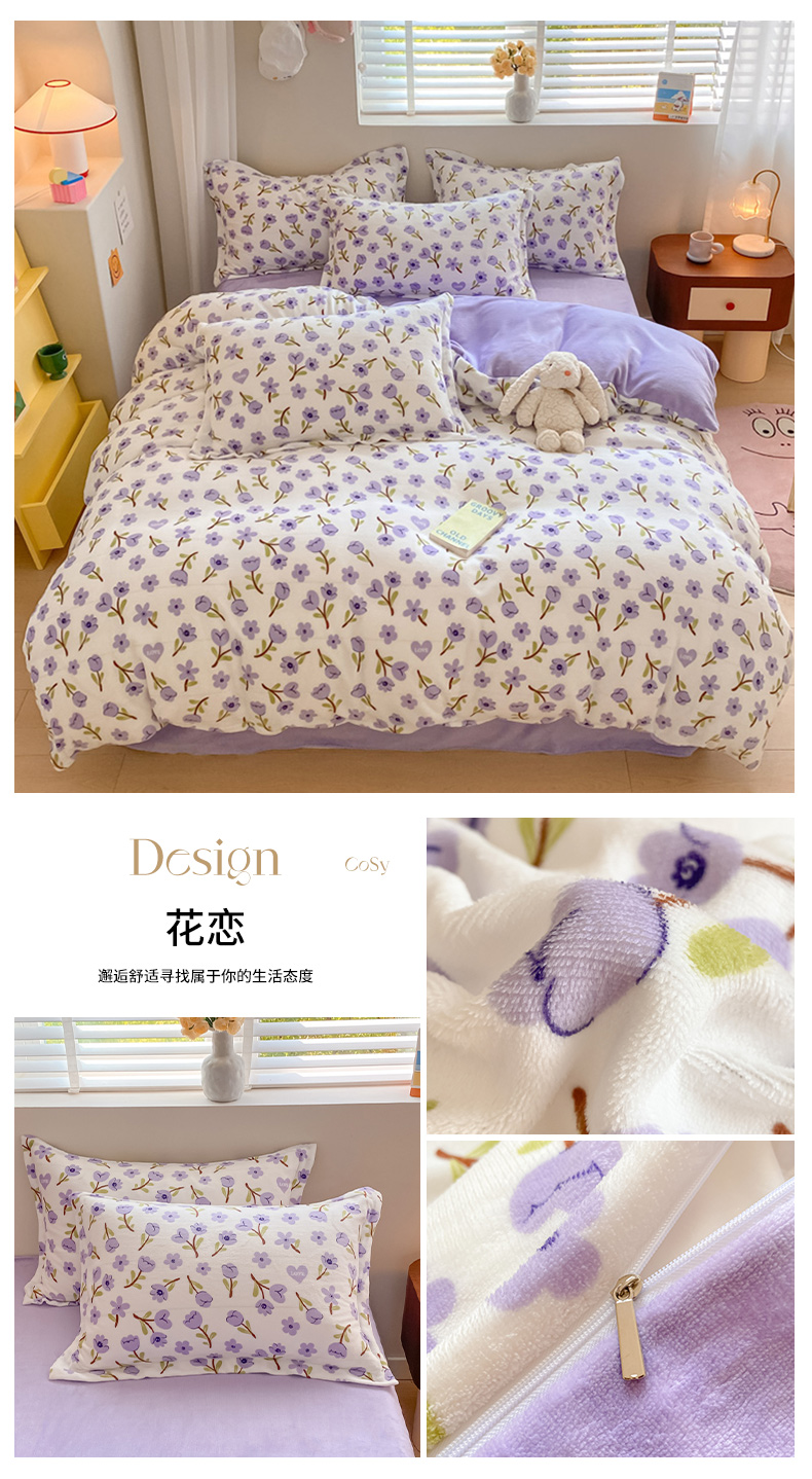当前位置: 91家纺网 > 商品网购 > 床品套件 > 四件套 > 牛奶绒四件套 > 梦之岛 2024新款高克重小清新印花牛奶绒保暖四件套 花恋