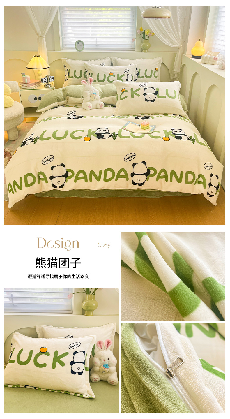 当前位置: 91家纺网 > 商品网购 > 床品套件 > 四件套 > 牛奶绒四件套 > 梦之岛 2024新款高克重小清新印花牛奶绒保暖四件套 熊猫团子