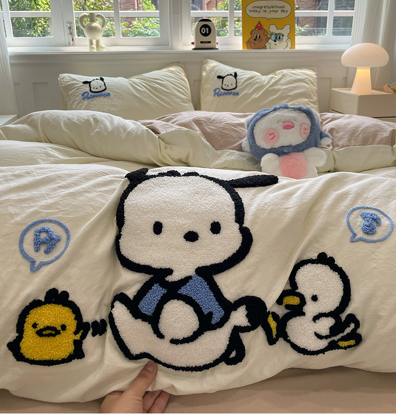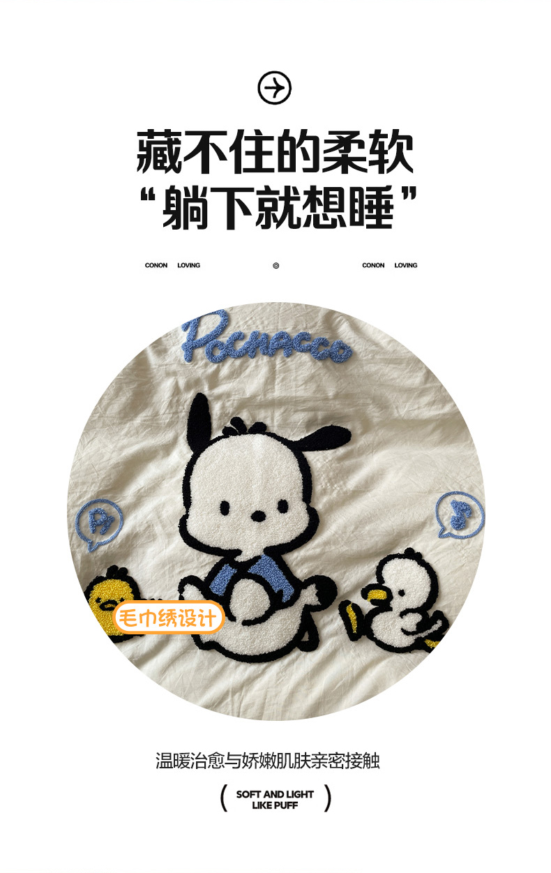 当前位置: 91家纺网 > 商品网购 > 床品套件 > 四件套 > 水洗棉四件套 > 奈颜 2024正版授权三丽鸥爆款超柔水洗棉纯色毛巾绣四件套学生三件套(含防伪吊牌)-摄影图 怕哈狗-乳白+奶茶