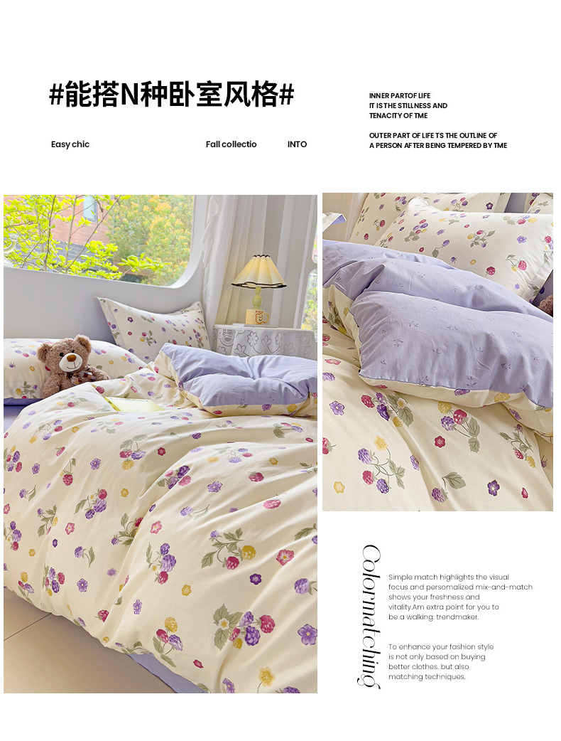 商品名称:暖芯优选 204新款直播爆款全棉-ins印花系列四件套纯棉三件套床单床笠 樱桃可可