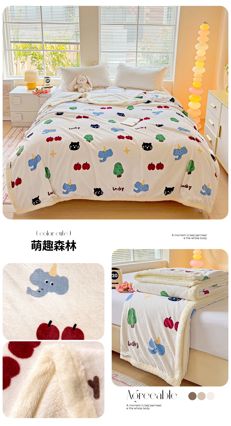 商品名称:鑫喜莱家纺 2024新款牛奶绒羊羔绒盖毯毛毯毯子午睡毯 萌趣森林