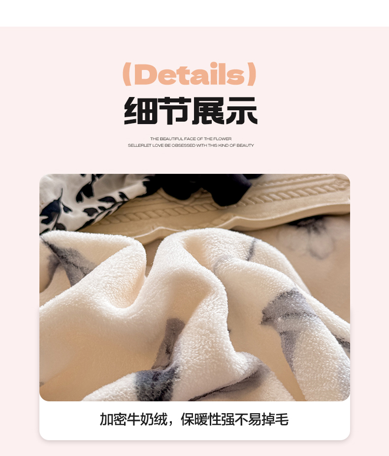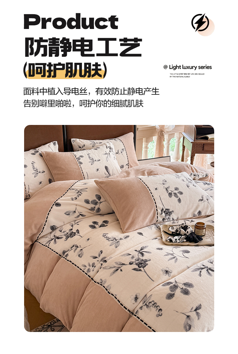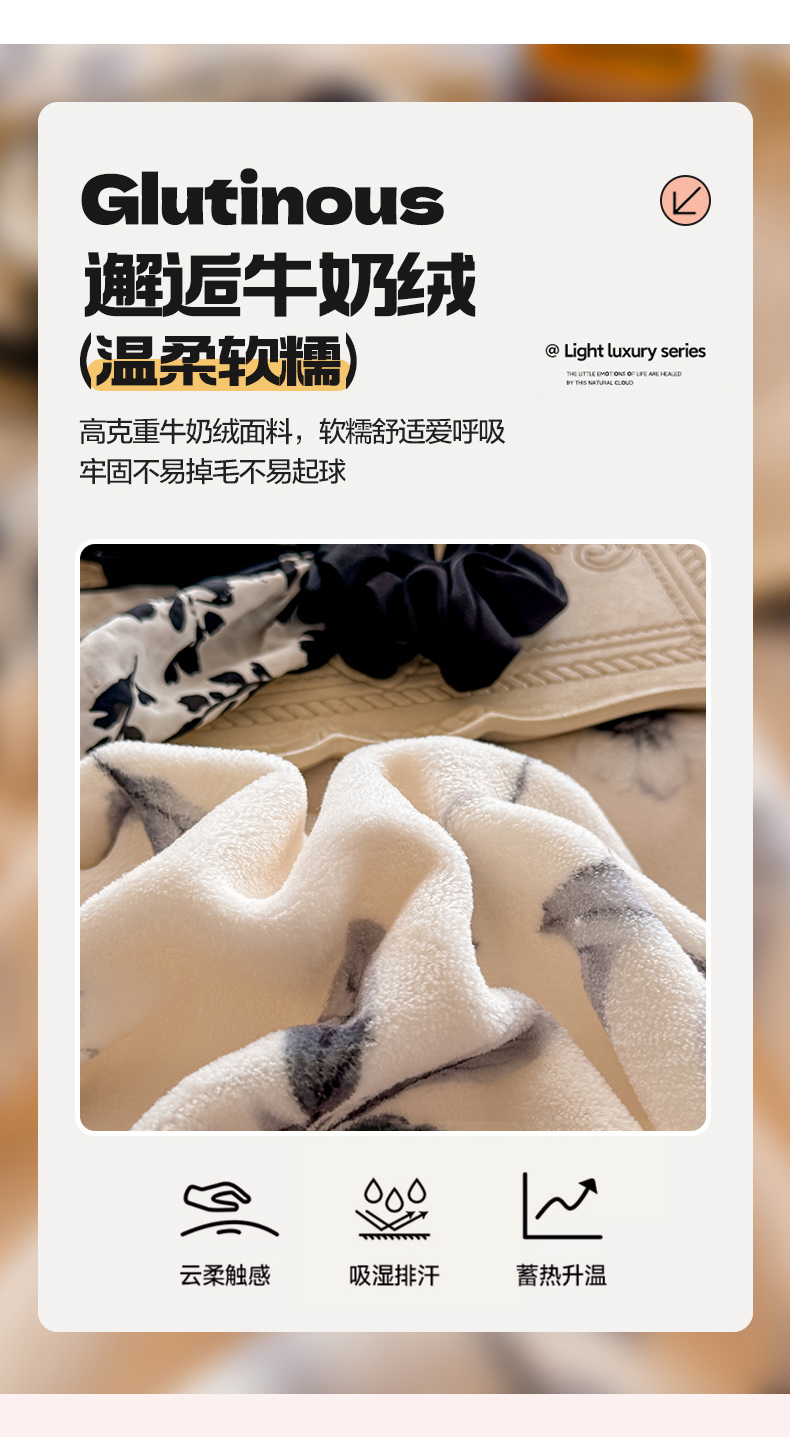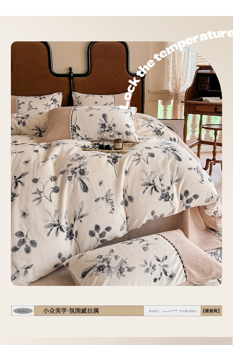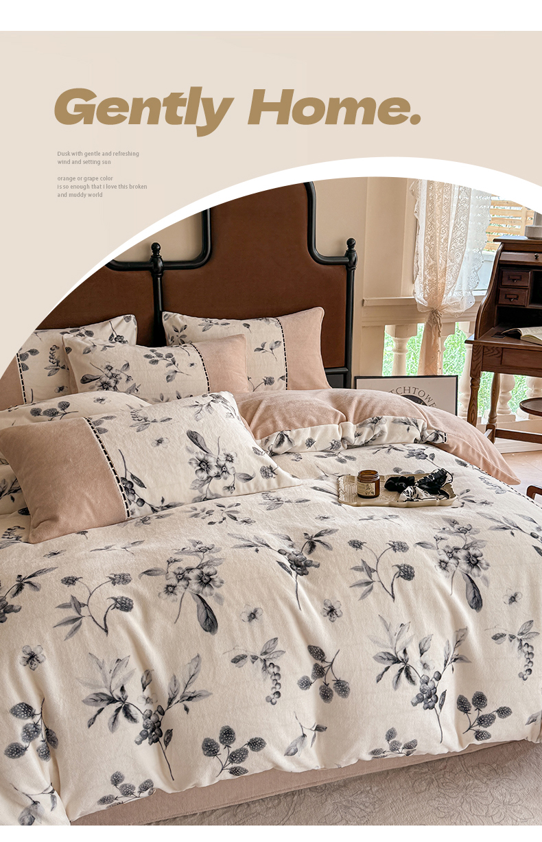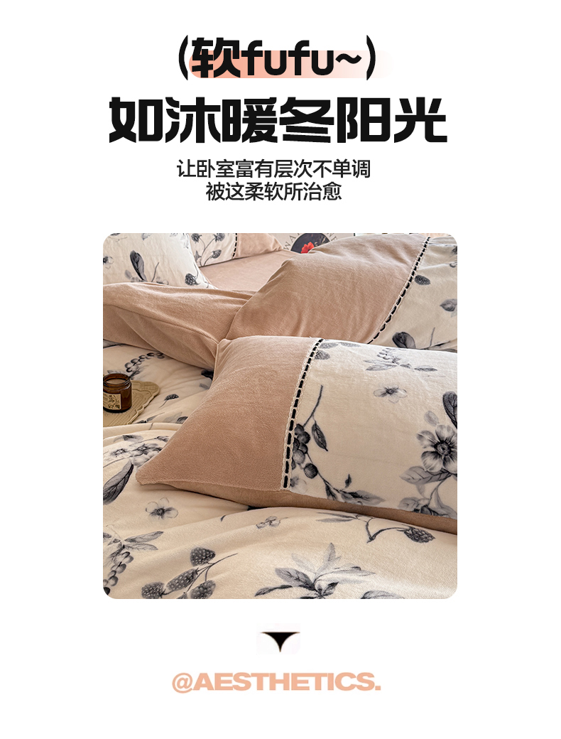 2024新款牛奶绒韩版数码印花四件套-朝花夕拾系列 朝花夕拾-咖