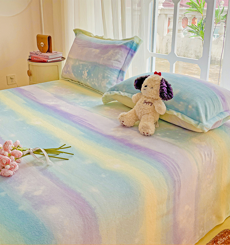 名兮家居 2024新款时尚卡通风高克重牛奶绒床单-盖毯 彩色的梦