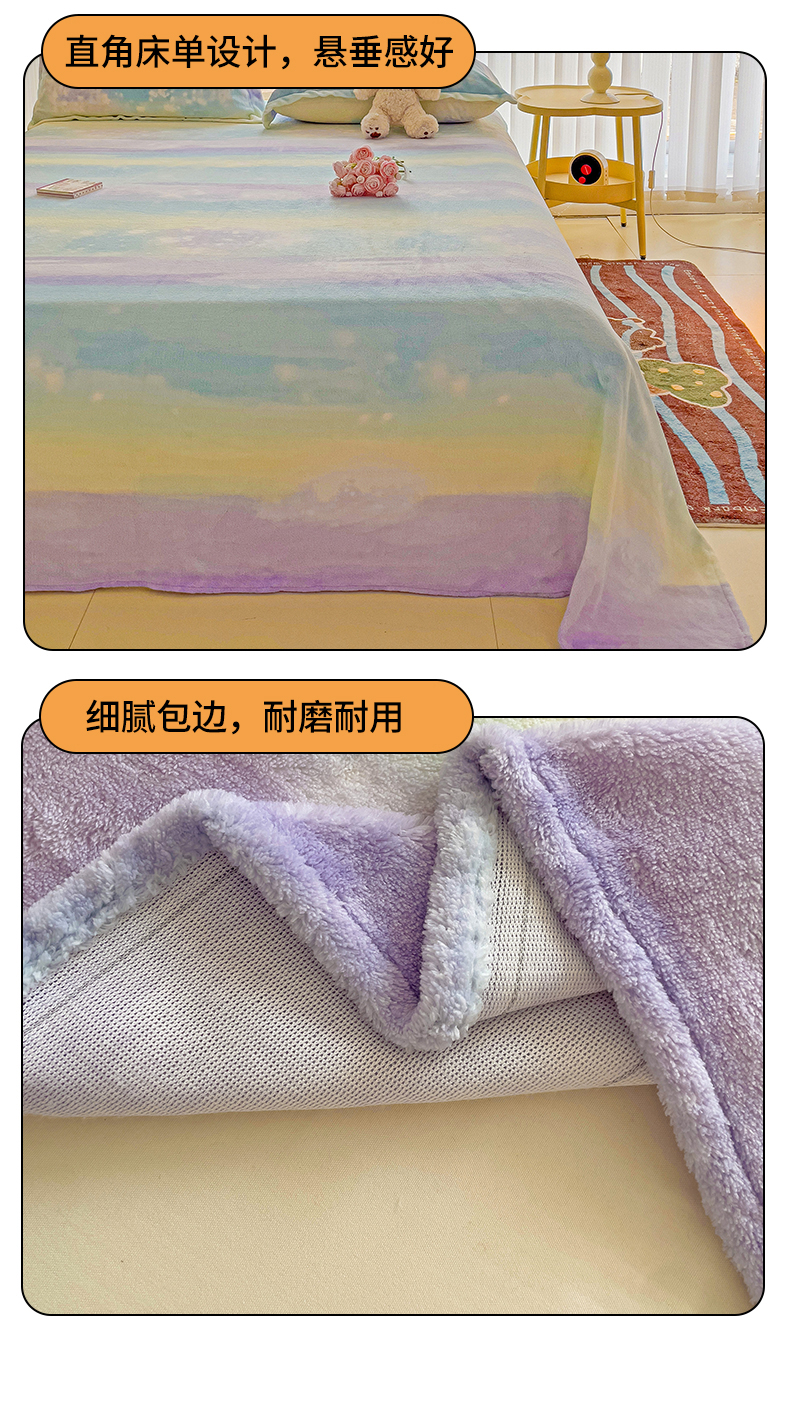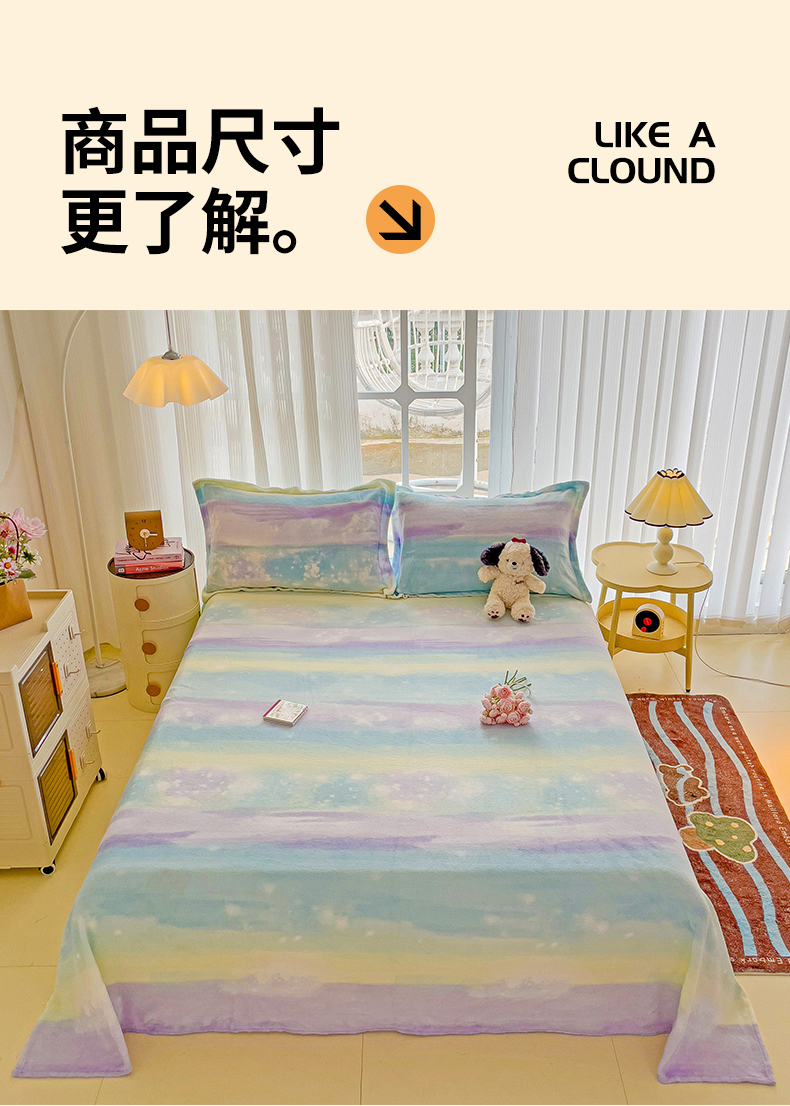 当前位置: 91家纺网 > 商品网购 > 床上用品 > 床单 > 名兮家居 2024新款时尚卡通风高克重牛奶绒床单-盖毯 彩色的梦