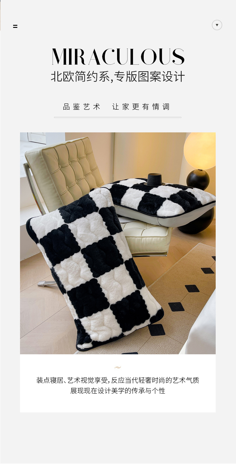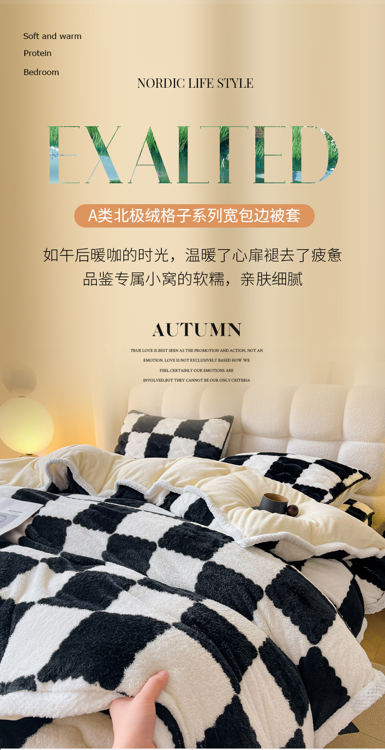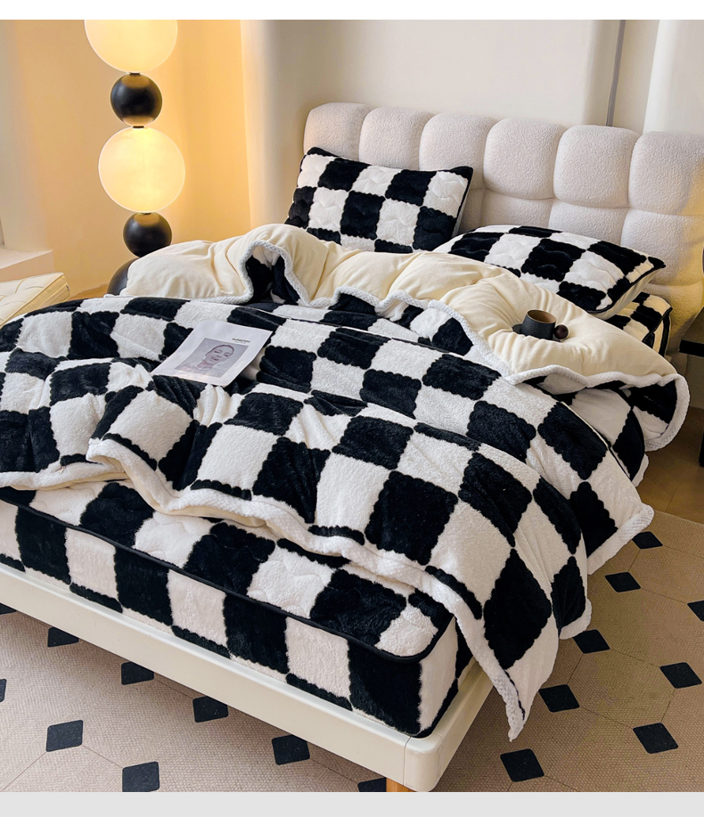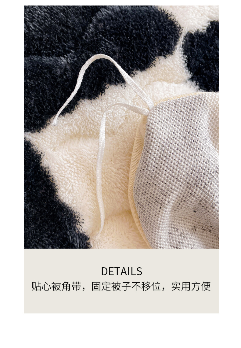 商品名称:2024新款A类北极绒格子-条纹系列宽包边加厚被套(暖光图) 棋盘格-黑白