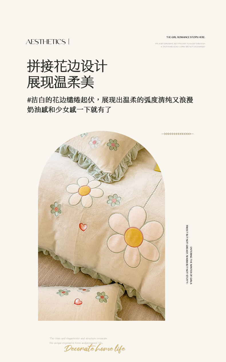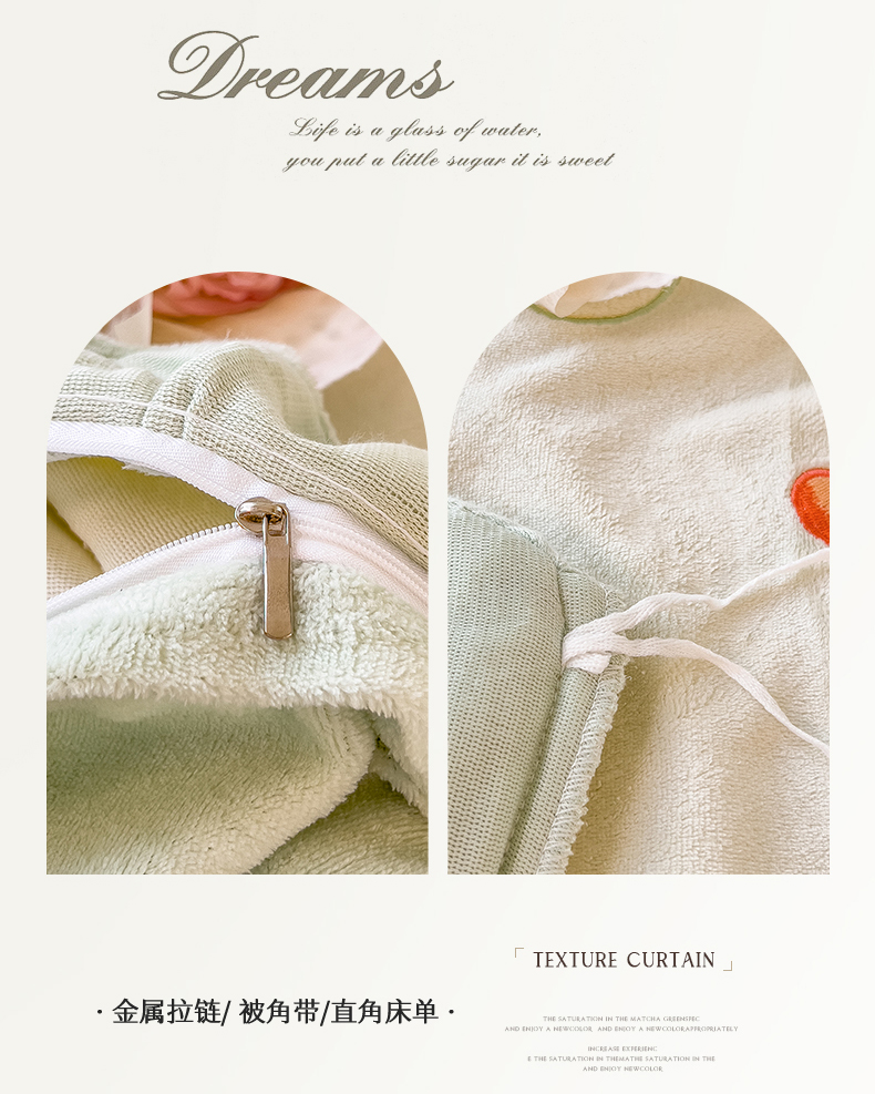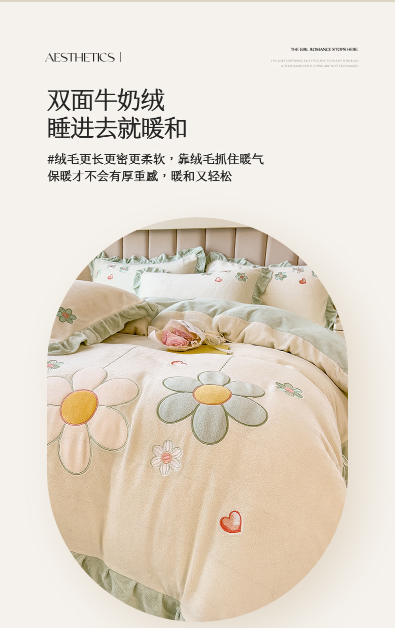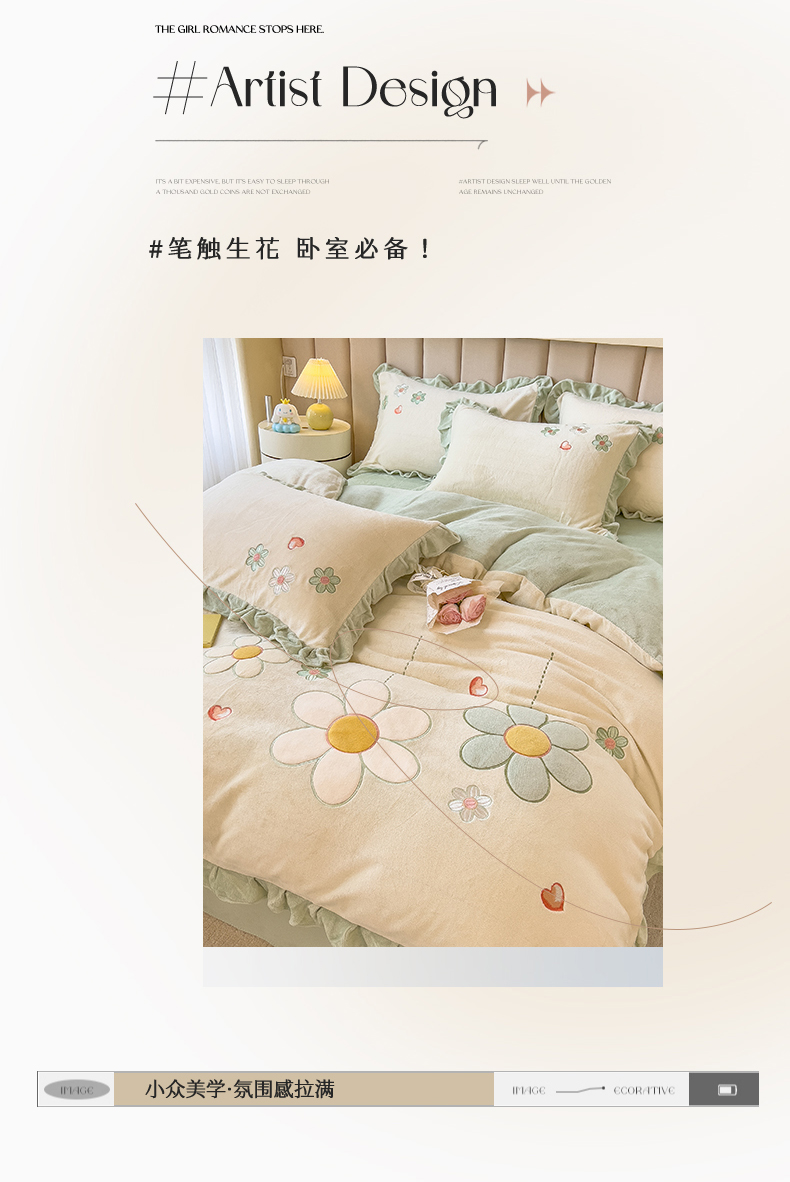 商品名称:兄弟坊 2024新款韩版牛奶绒花朵贴布绣四件套 花朵青柠