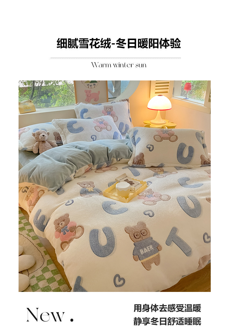 商品名称:慕尚 2025新款高克重印花雪花绒被套单件 字母熊