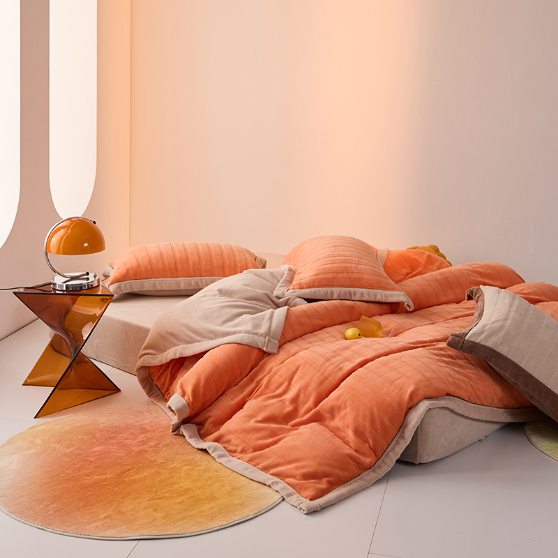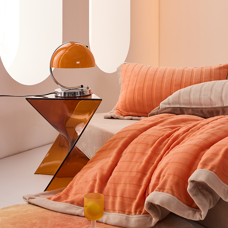 商品名称:LADYCOCO可可家居 2024新款牛奶3D绒立体雕花剪花单品系列-单被套 橘色+卡其色