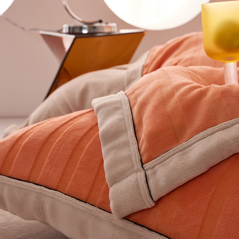 LADYCOCO可可家居 2024新款牛奶3D绒立体雕花剪花单品系列-单被套 橘色+卡其色