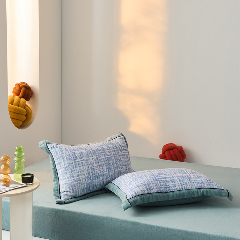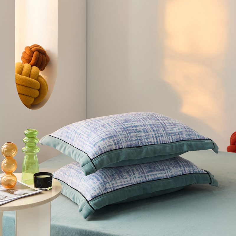 LADYCOCO可可家居 单枕套-2024新款牛奶绒数码印花单品系列 香雾蓝色+蓝色