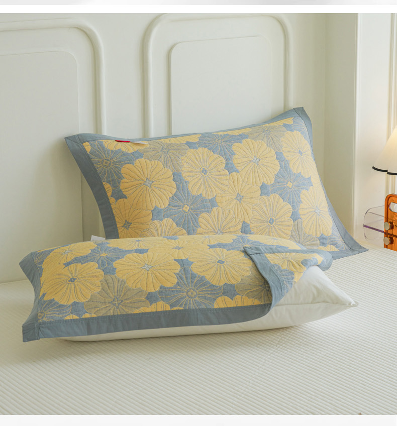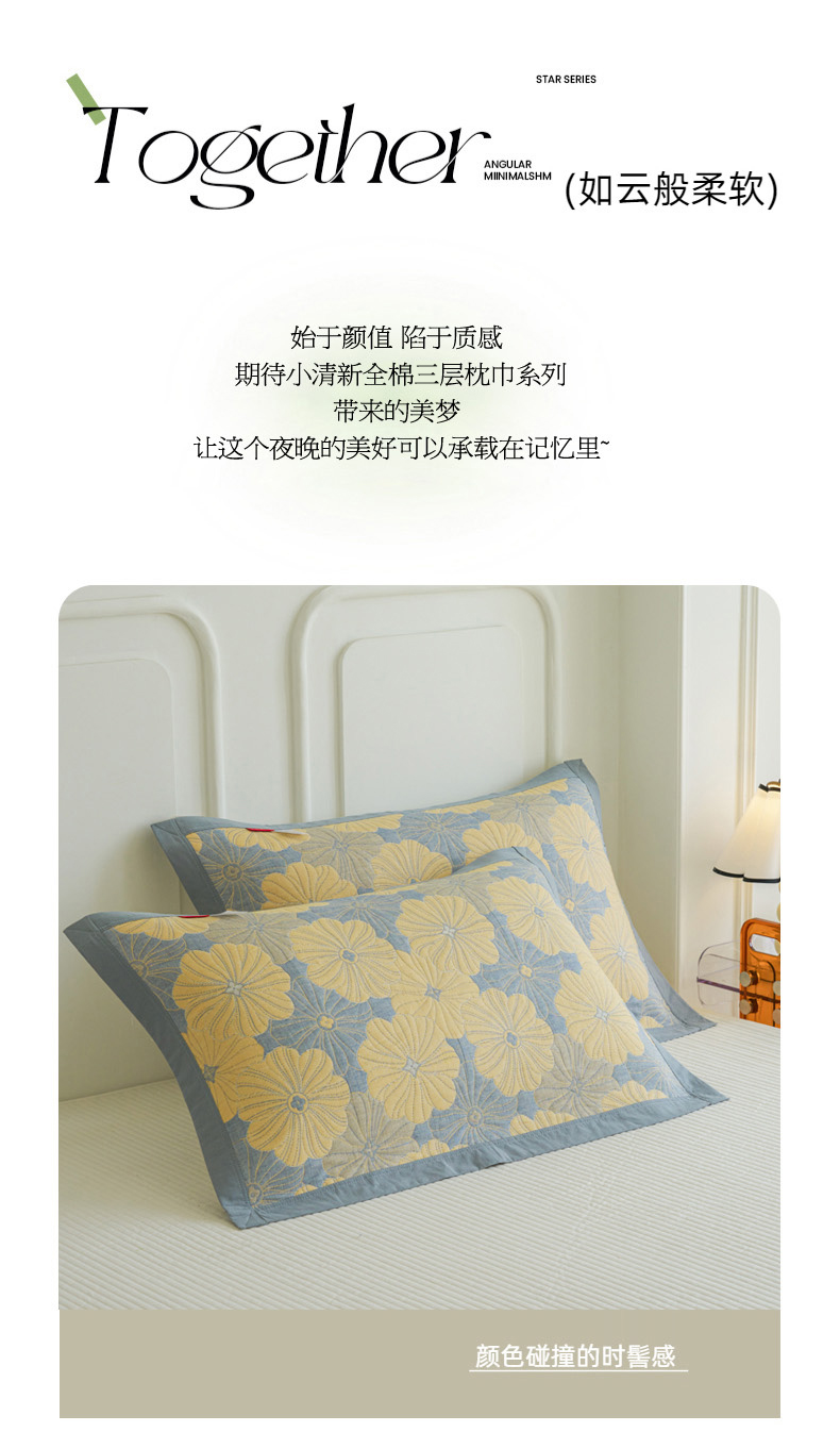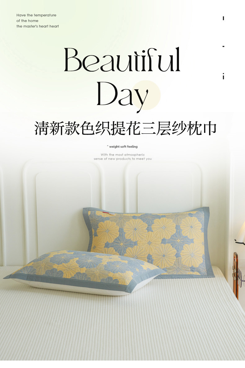 棠薇家纺 2025新款清新款全棉细纱三层纱包边枕巾一对装 荷叶-枕巾