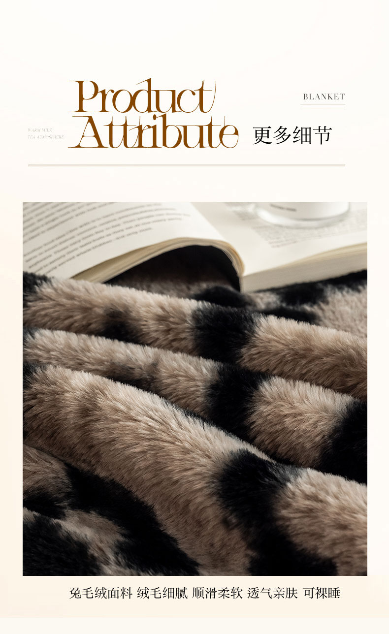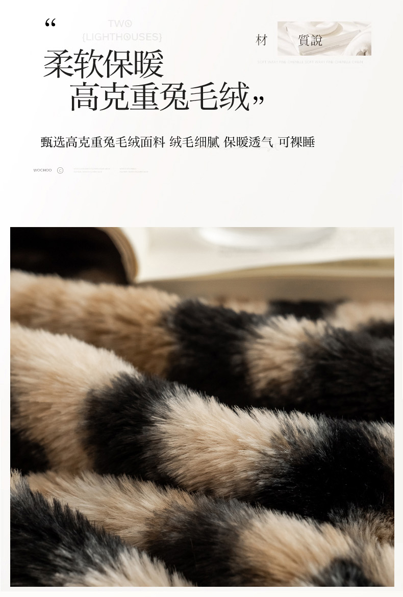 (总)九花鹿 2025新款丹麦皮草绒水貂绒盖毯毛毯毯子-豹纹,豹纹粉,豹纹灰,豹纹咖