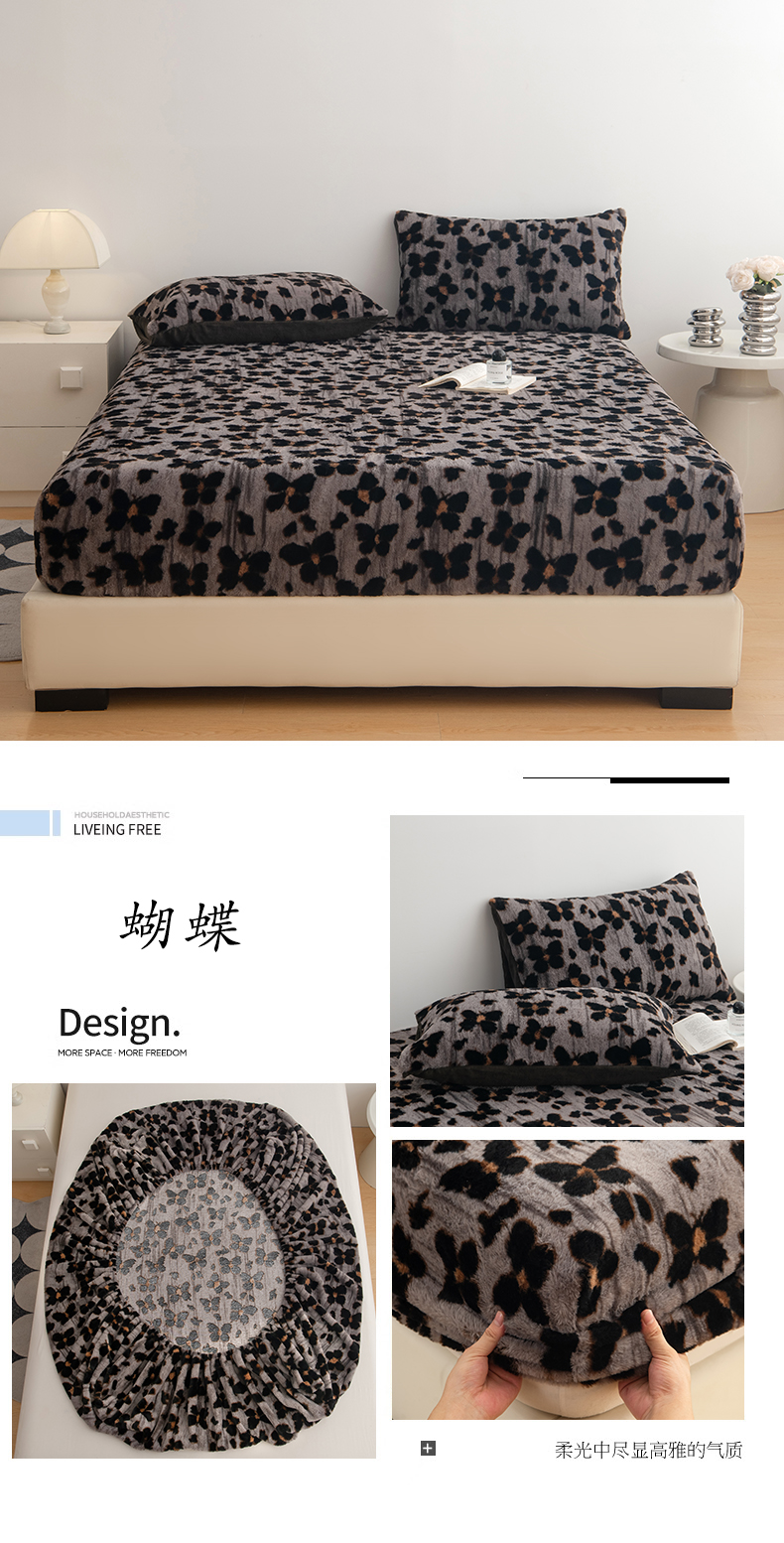 (总)九花鹿 2025新款水貂绒蝴蝶结豹纹四件套,蝴蝶结豹纹-粉,蝴蝶结豹纹-灰,蝴蝶结豹纹-咖