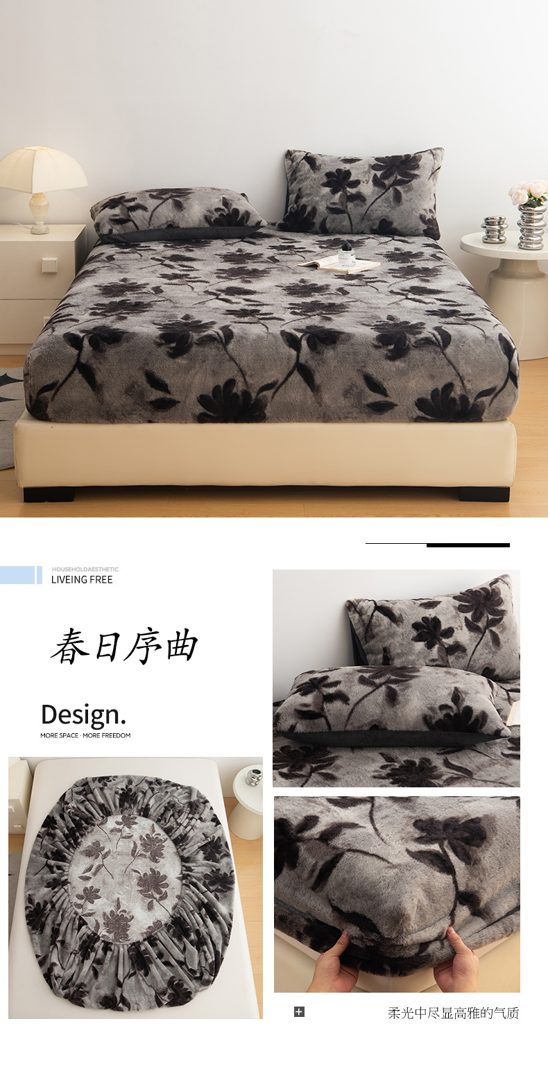 (总)九花鹿 2025新款A类加厚兔毛绒单床笠床褥子床护垫