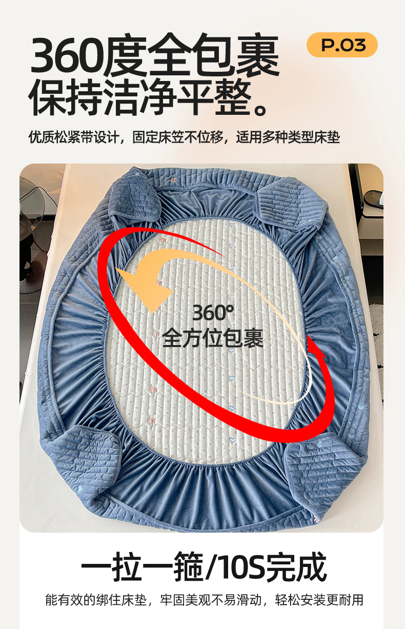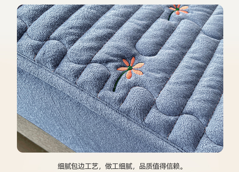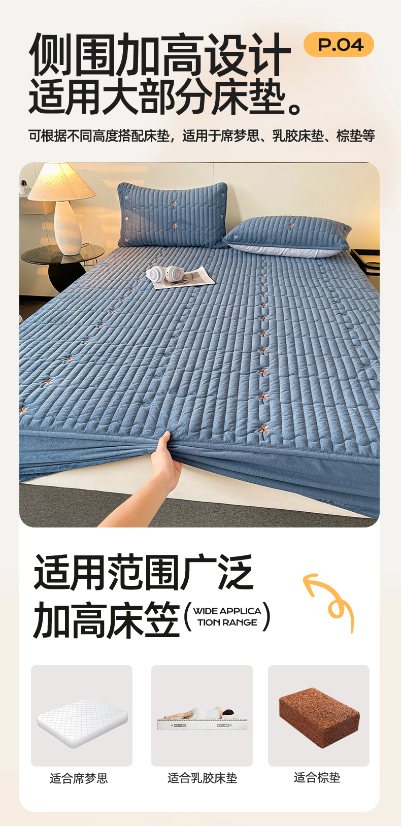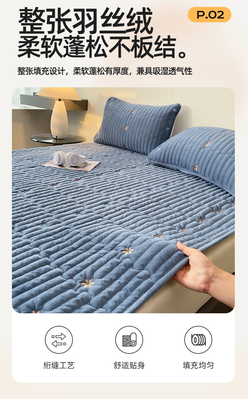 商品名称:2024新款A类纯色牛奶绒刺绣薄款床垫加厚绒保暖床笠床护垫 艾维-蓝(床褥款)