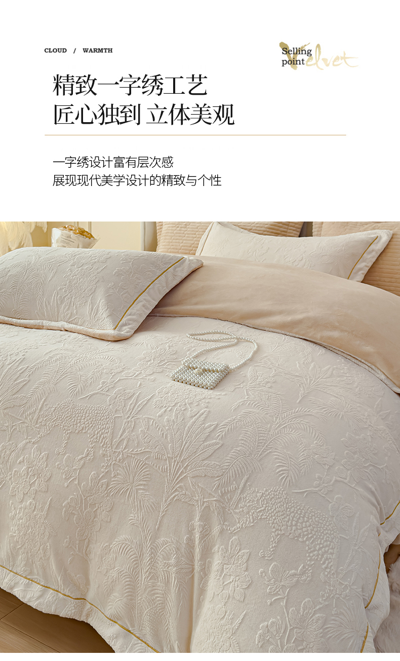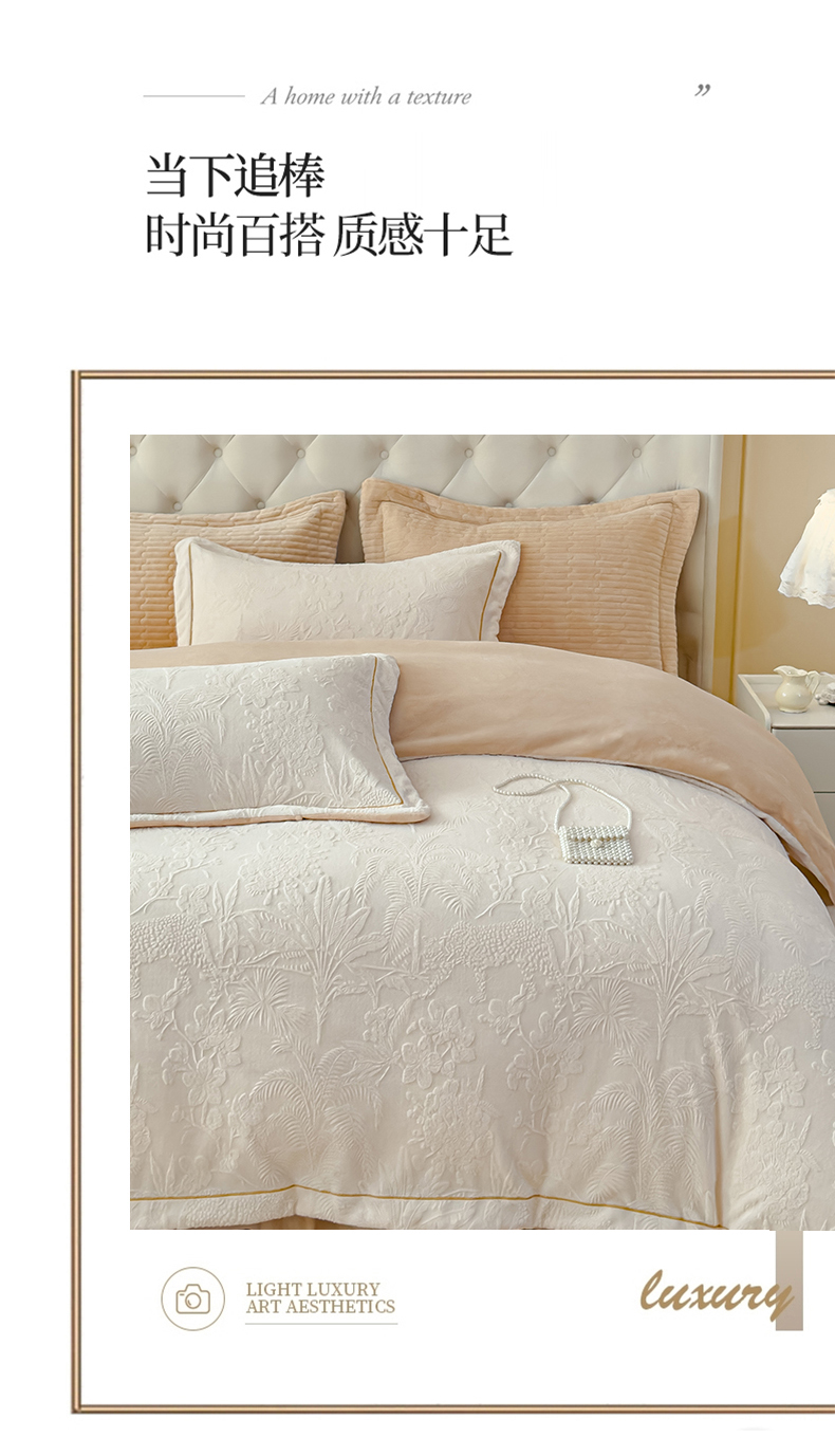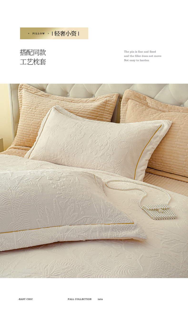 (总)木兰花 2025新款纯色雕花全消光牛奶绒 床盖款四件套-铃兰意象系列,铃兰意象-粉玉,铃兰意象-米咖,铃兰意象-天空蓝,铃兰意象-香芋紫