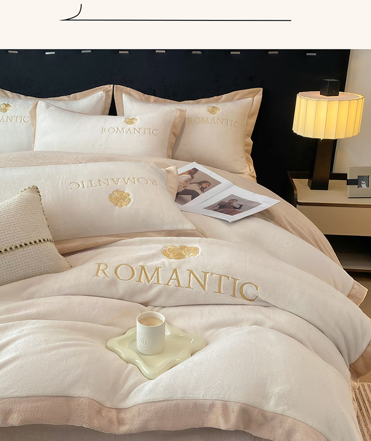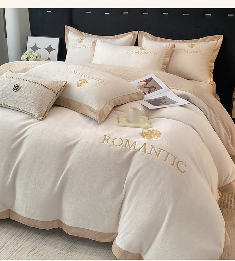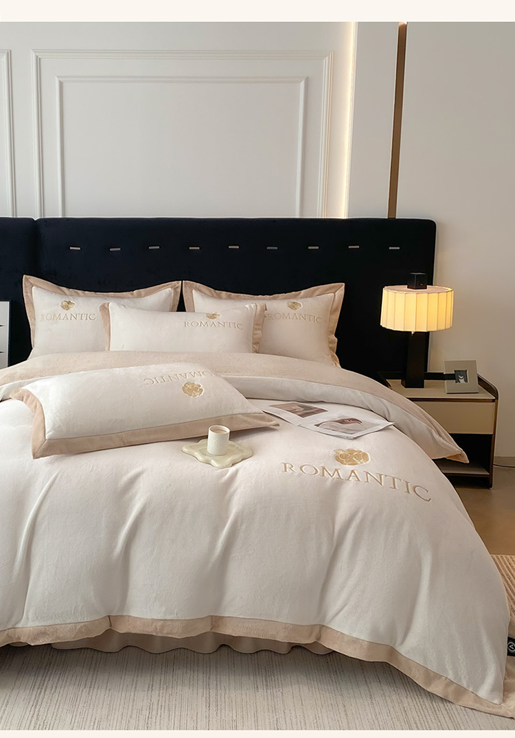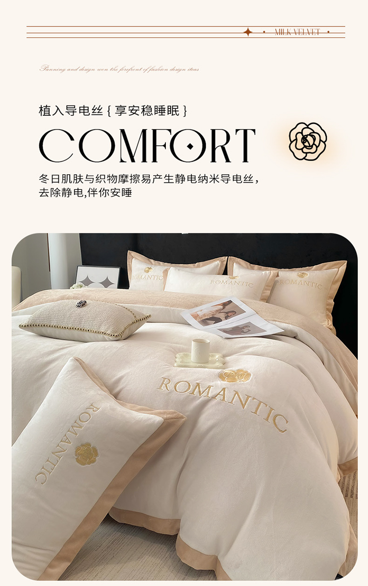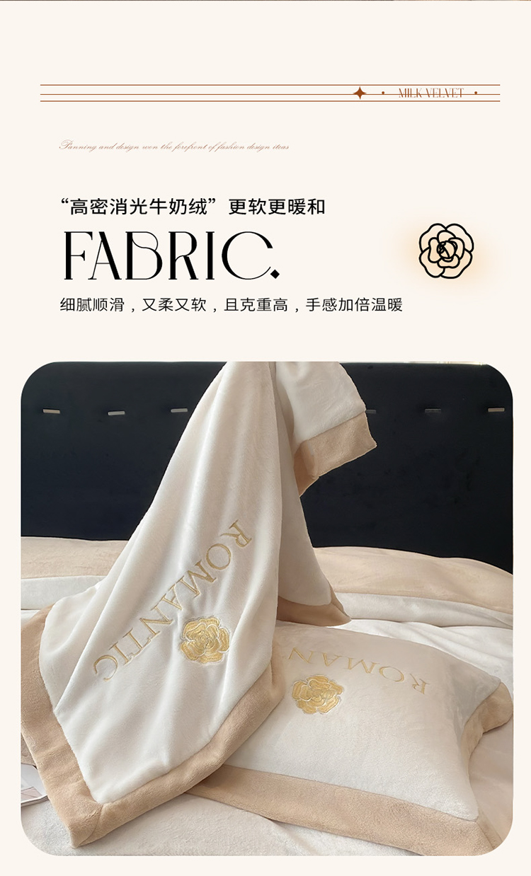 商品名称:(总)2025秋冬230g9斤全消光牛奶绒双拼绣花四件套绒宽边被套高端轻奢山茶花系列