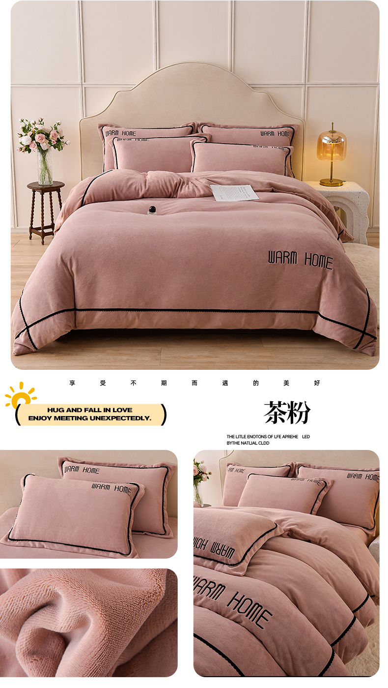 商品名称:同田家纺 2024新款230克蓄暖高克重牛奶绒四件套 茶粉