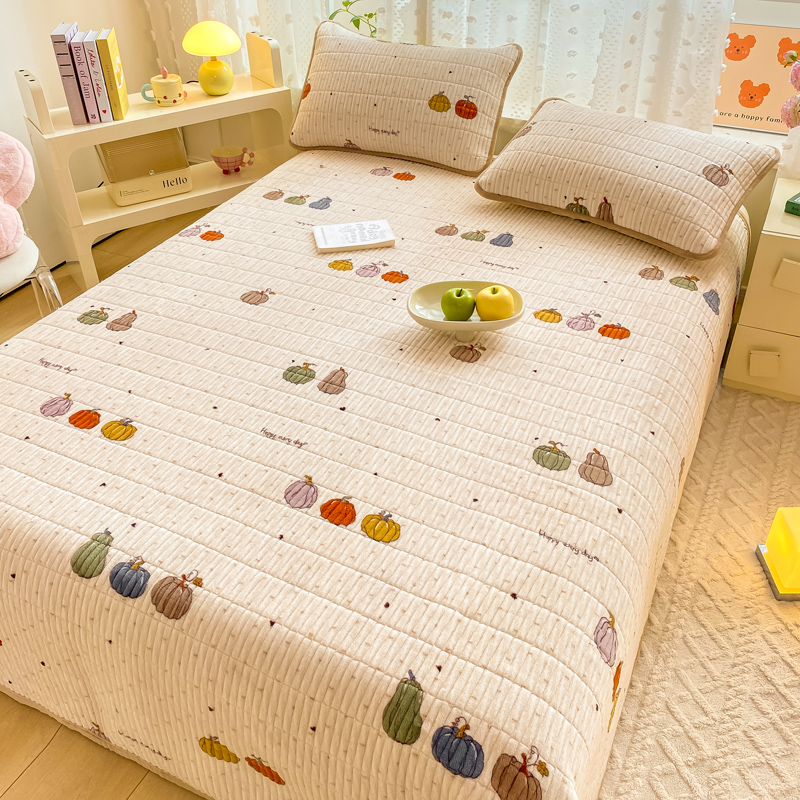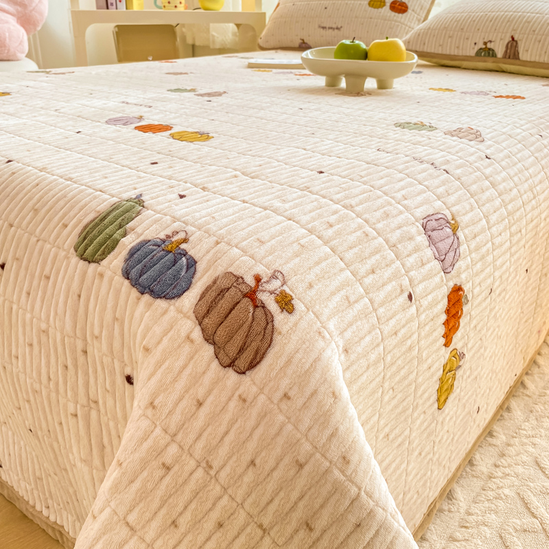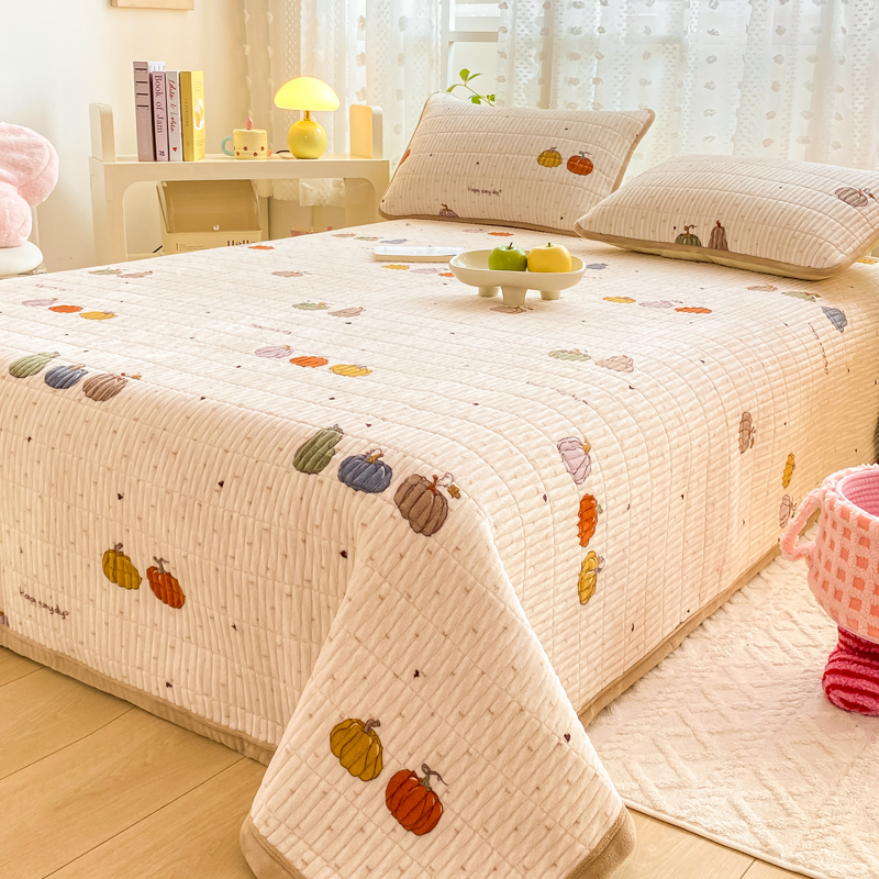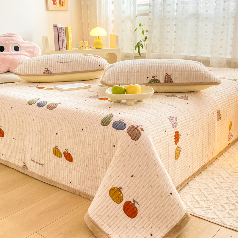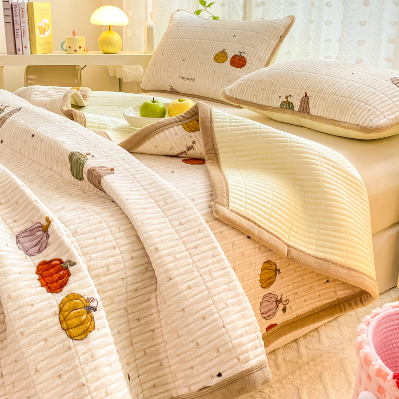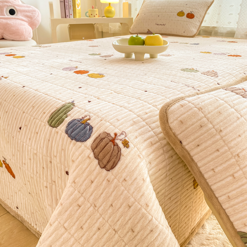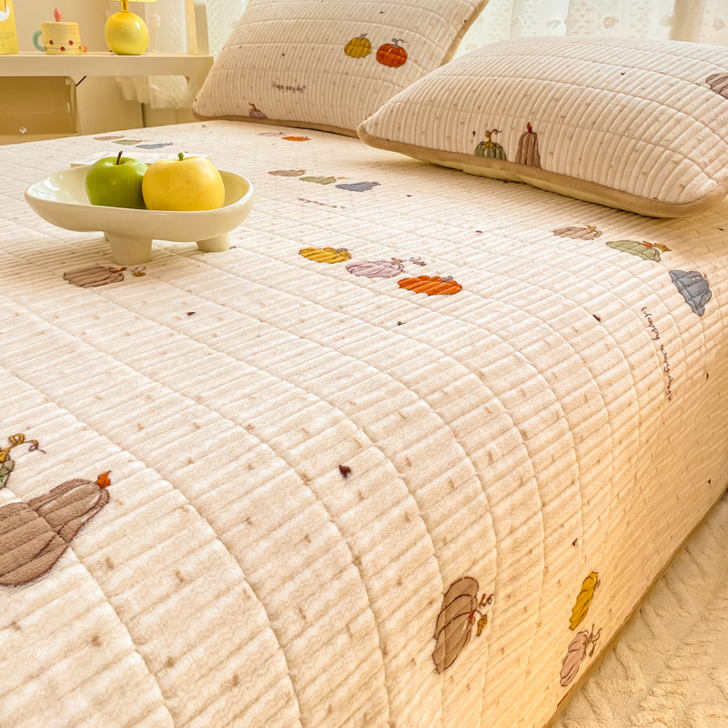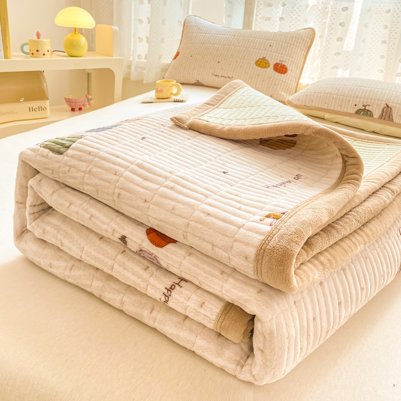 家喜爱 2024新款A类牛奶绒夹棉加厚直边软床盖 三兄弟-南瓜