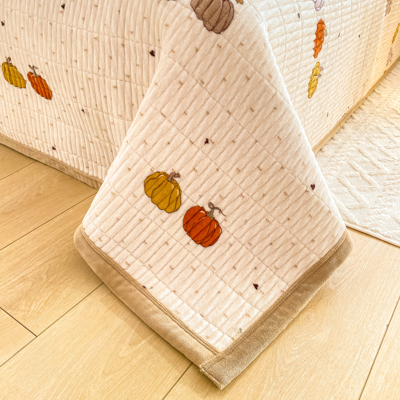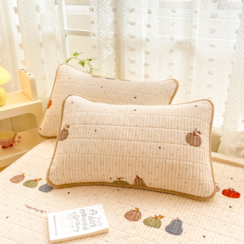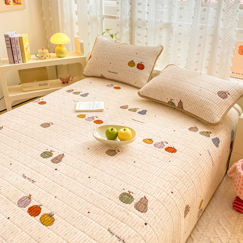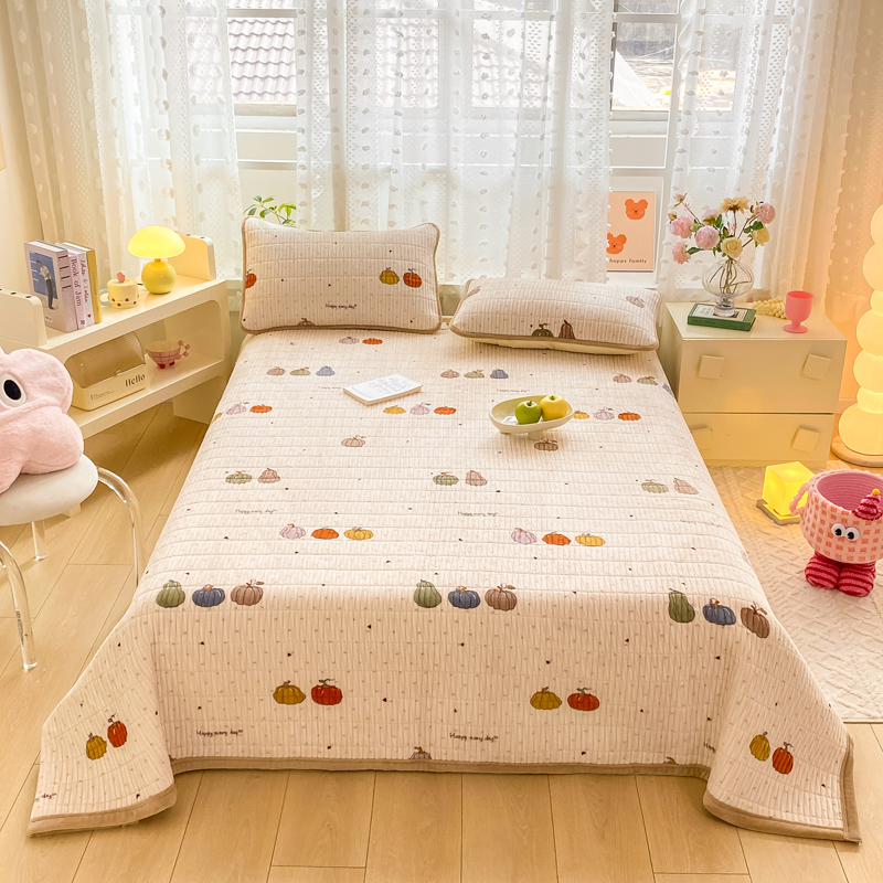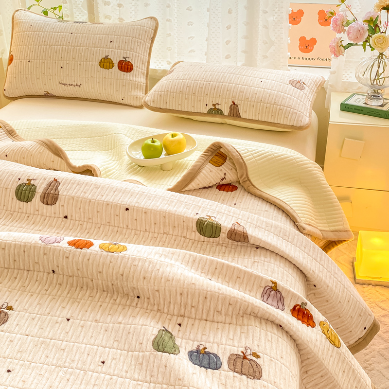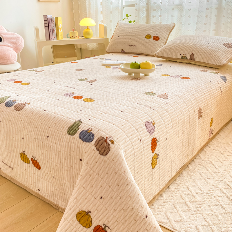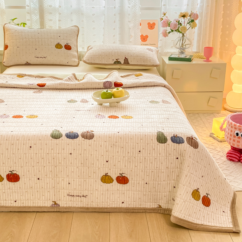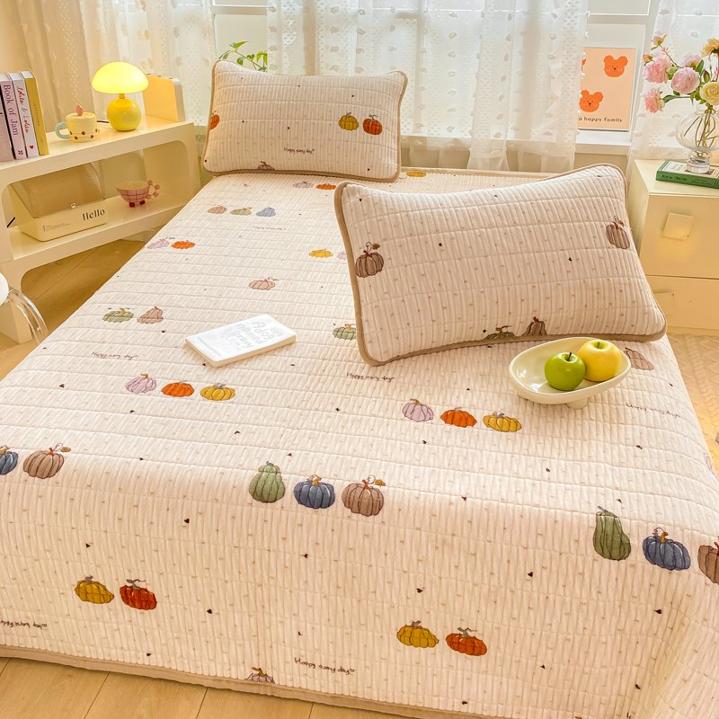 家喜爱 2024新款A类牛奶绒夹棉加厚直边软床盖 三兄弟-南瓜