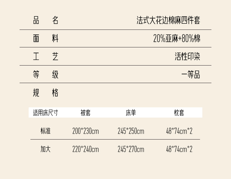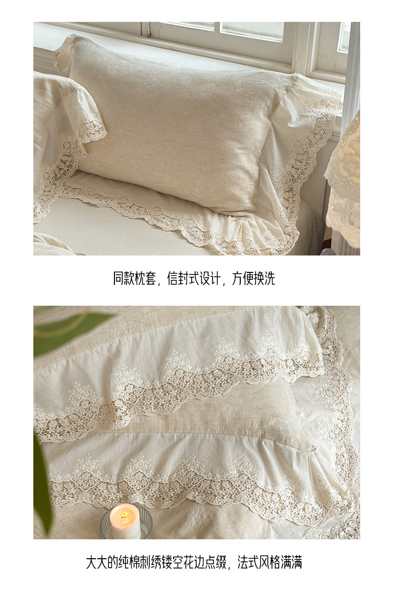 商品名称:(总)淑女公社家纺 2024四季新款法式大花边棉麻四件套