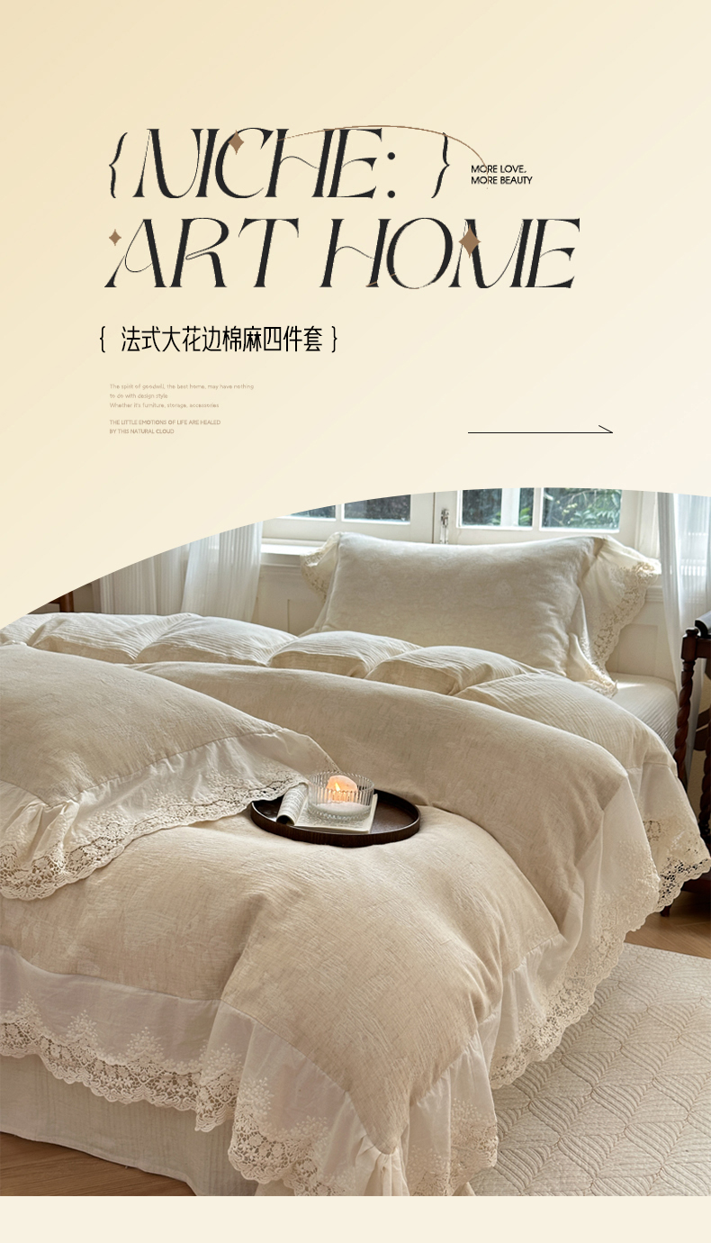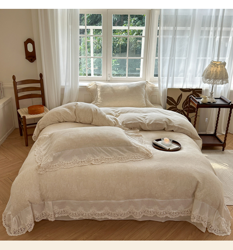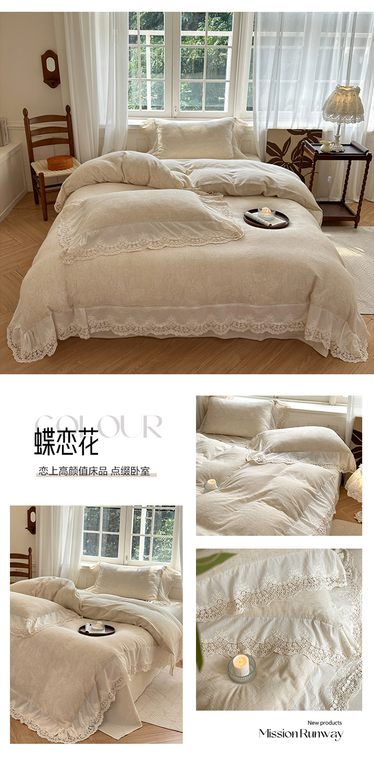 (总)淑女公社家纺 2024四季新款法式大花边棉麻四件套