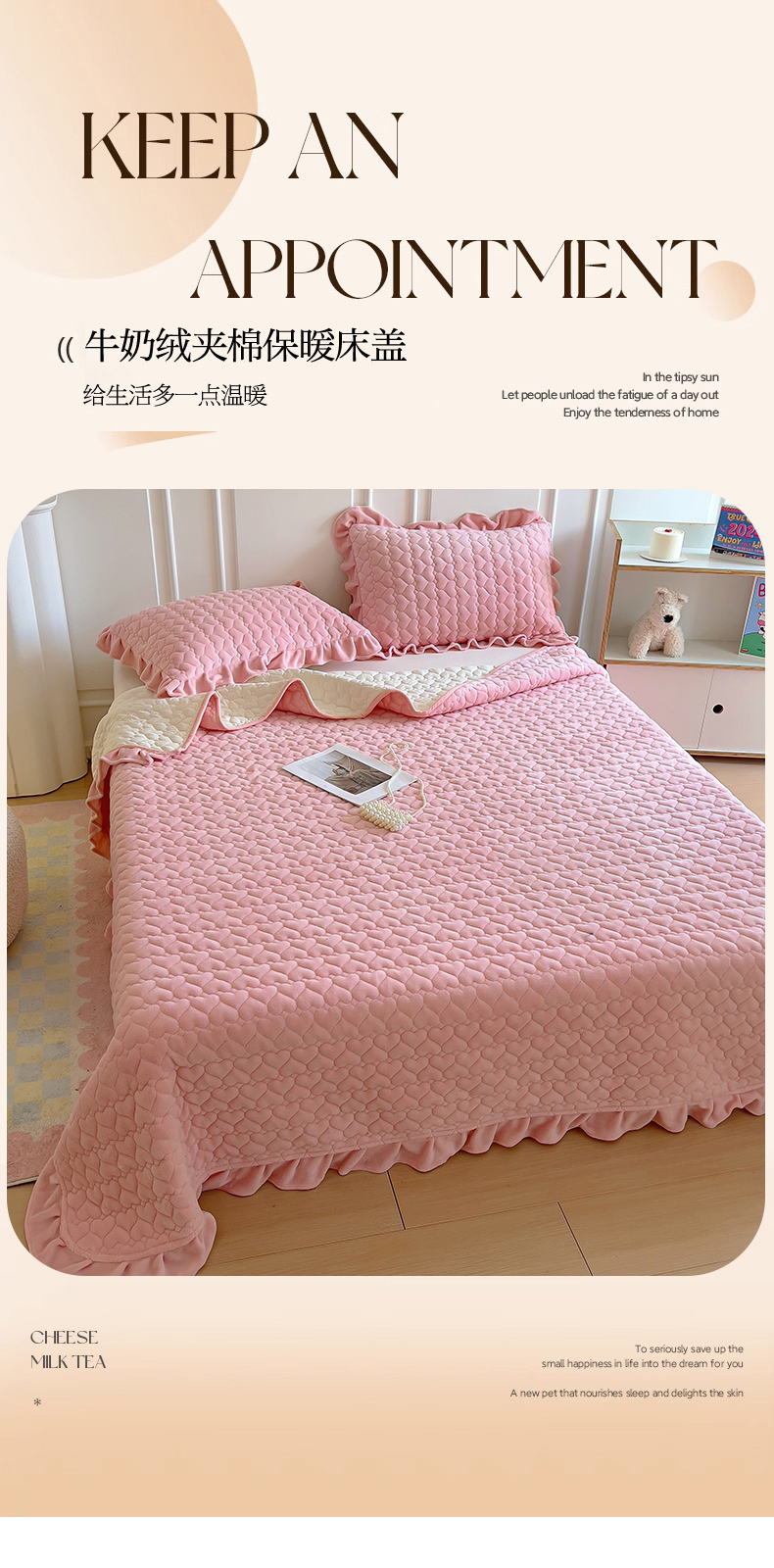 商品名称:(总)美梦家纺 2024新款素色牛奶绒花边床盖系列