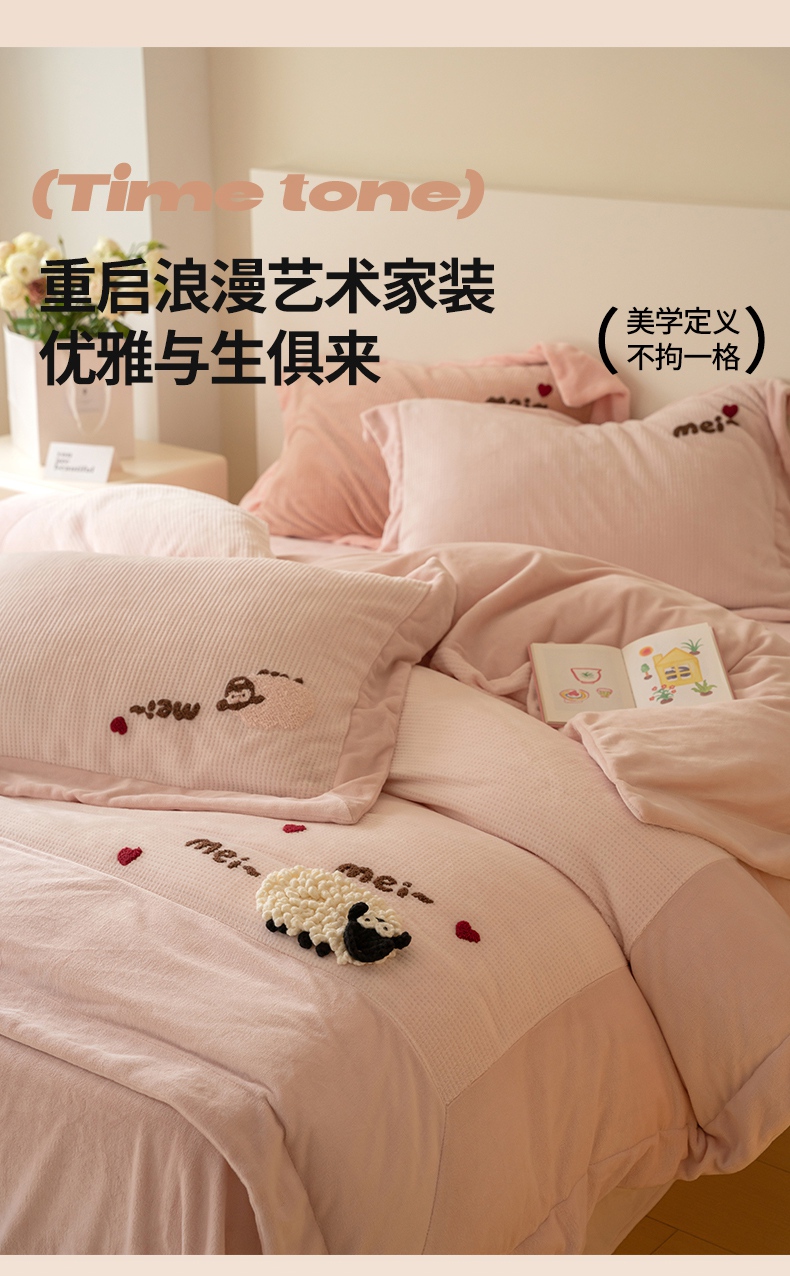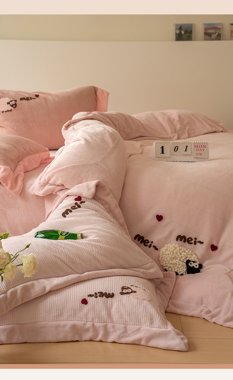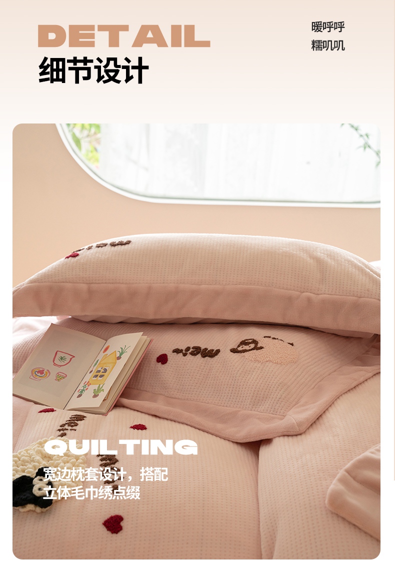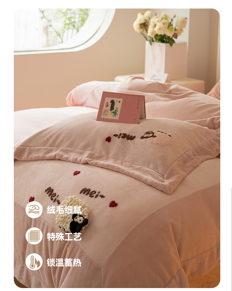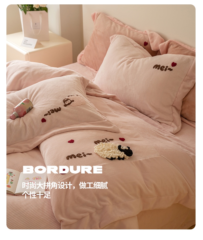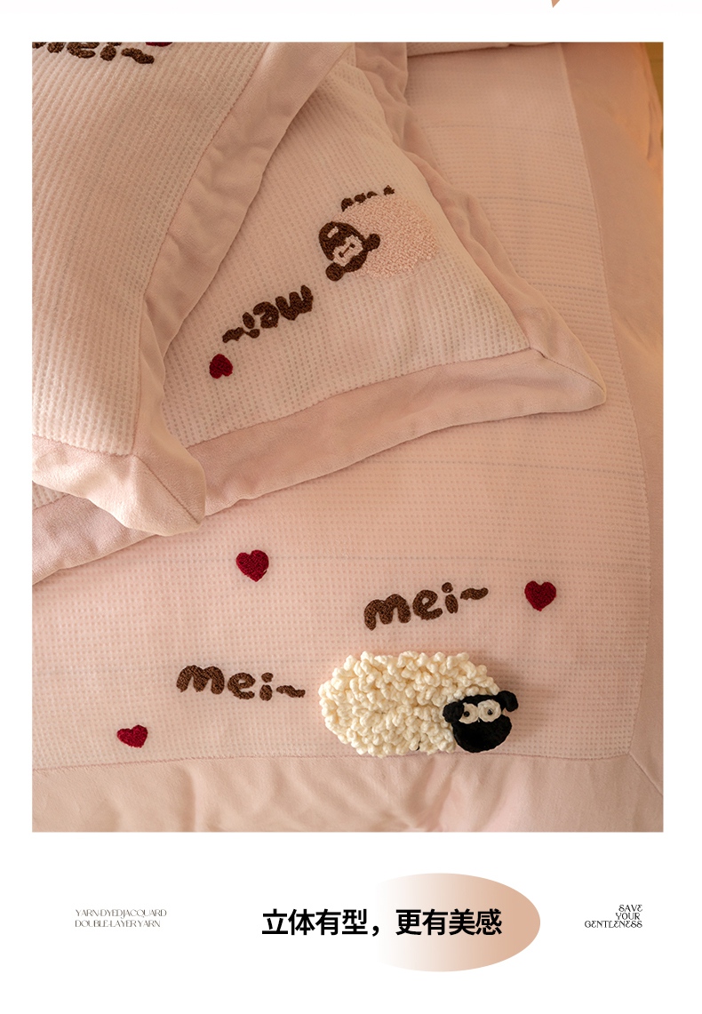商品名称:名品优仓 2024新款华夫格牛奶绒毛巾绣四件套-喜洋洋 喜洋洋 萝莉粉