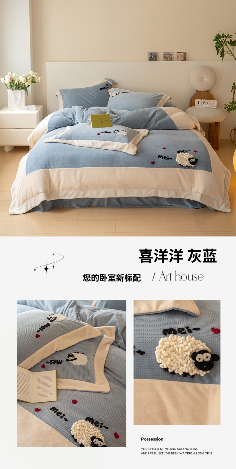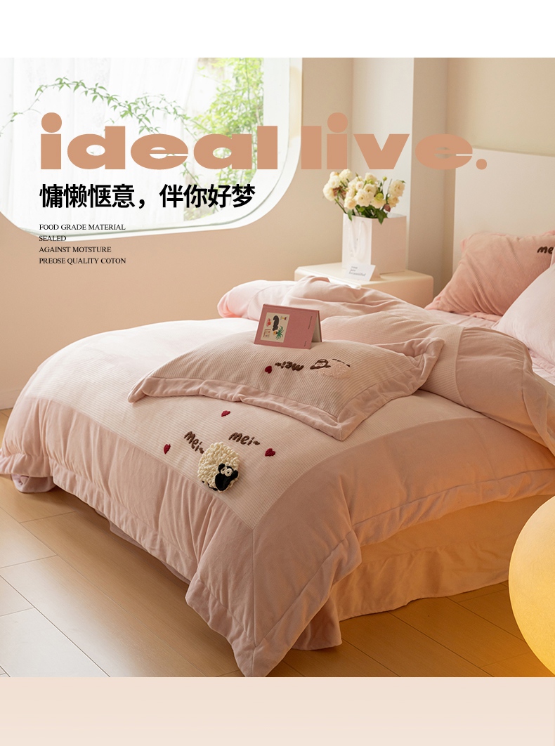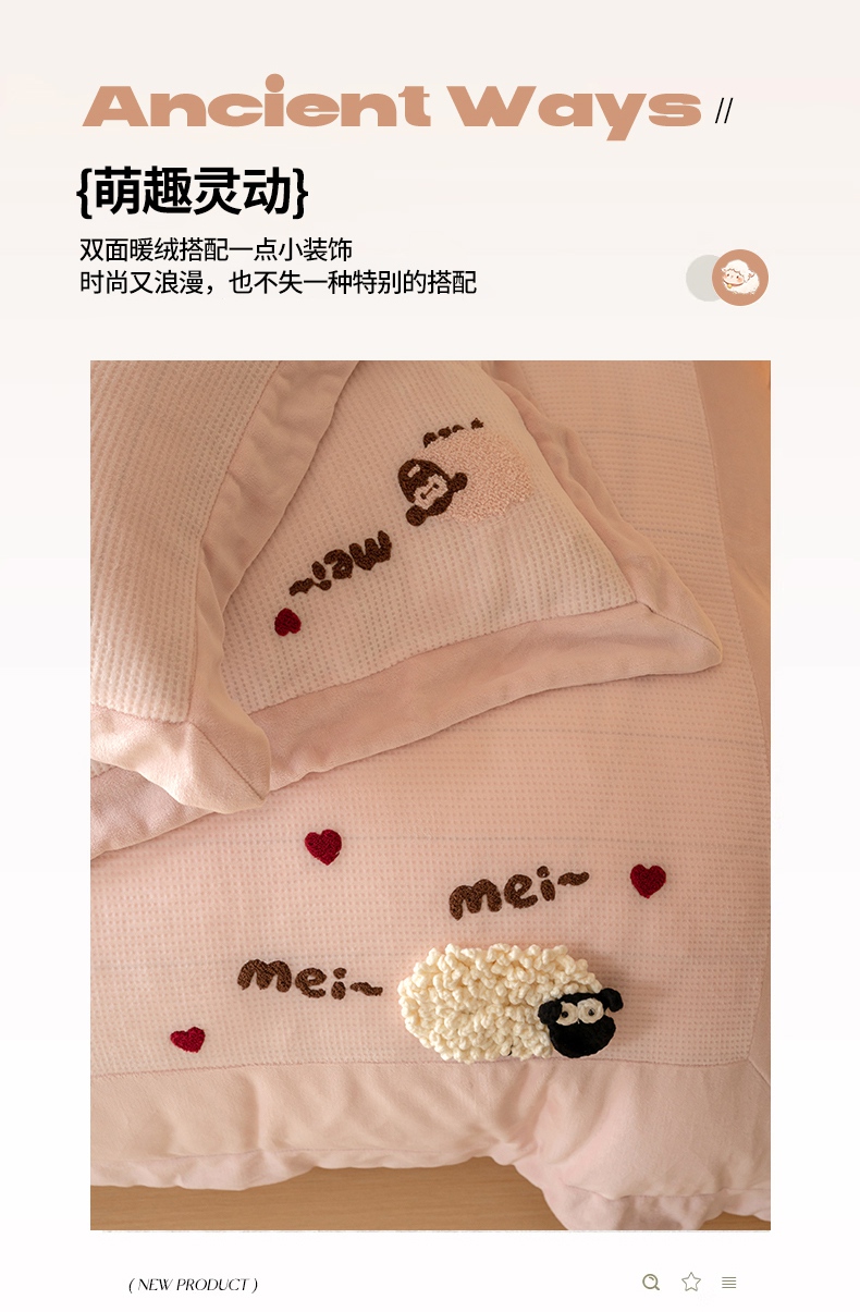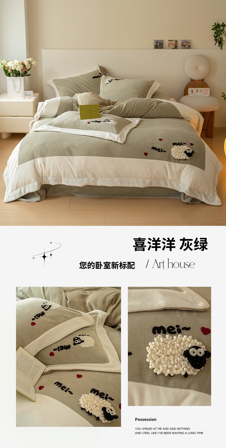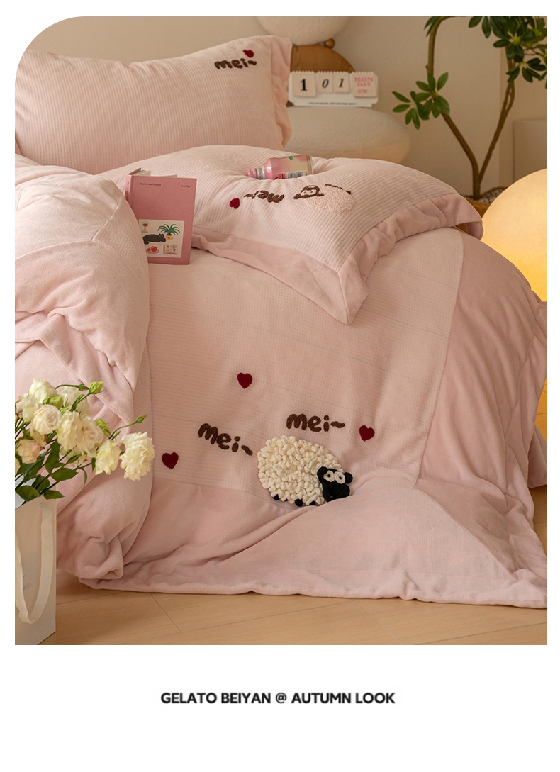 商品名称:名品优仓 2024新款华夫格牛奶绒毛巾绣四件套-喜洋洋 喜洋洋 萝莉粉