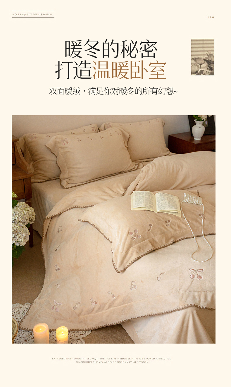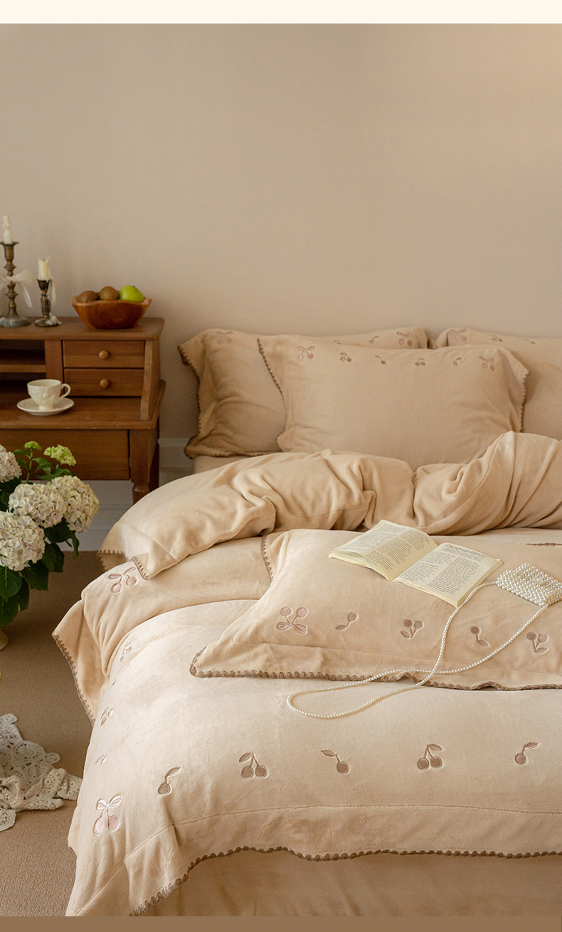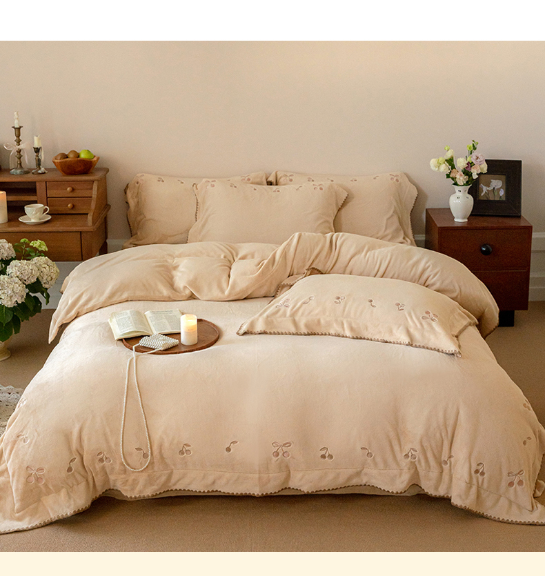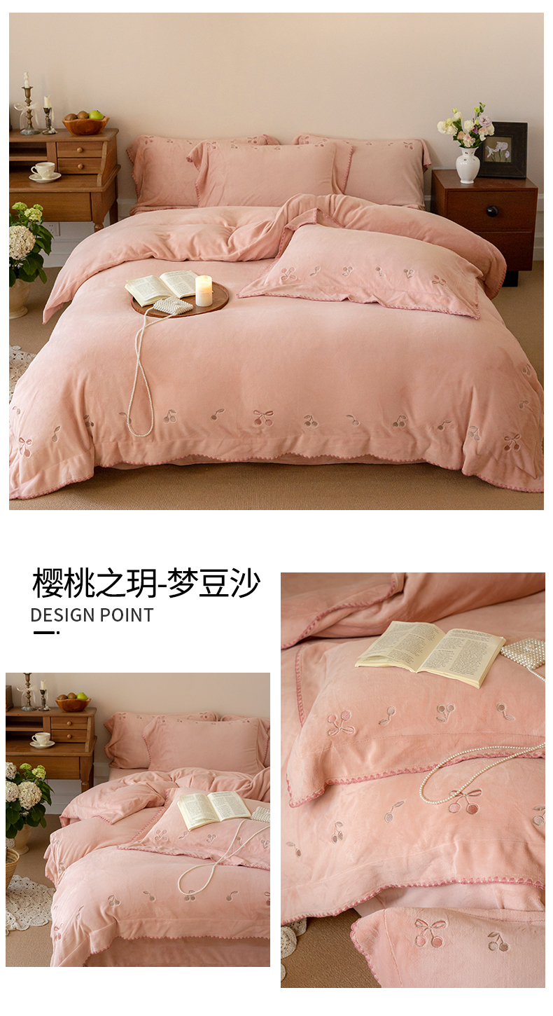 (总)名品优仓 2024新款高克重牛奶绒绣花四件套-樱桃之玥