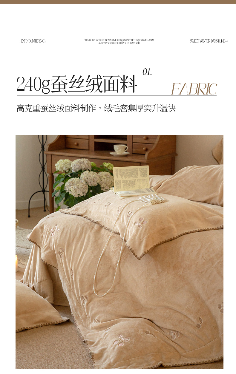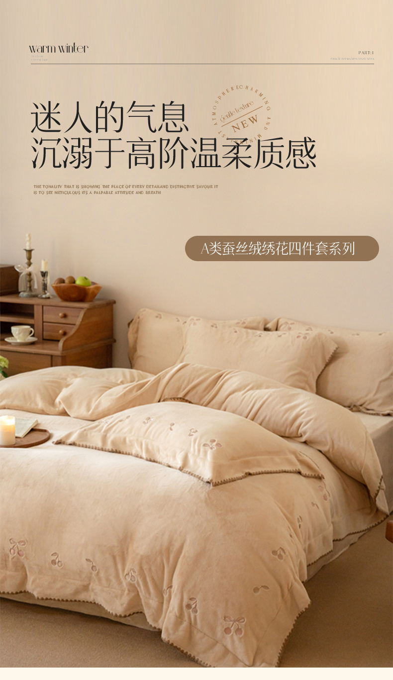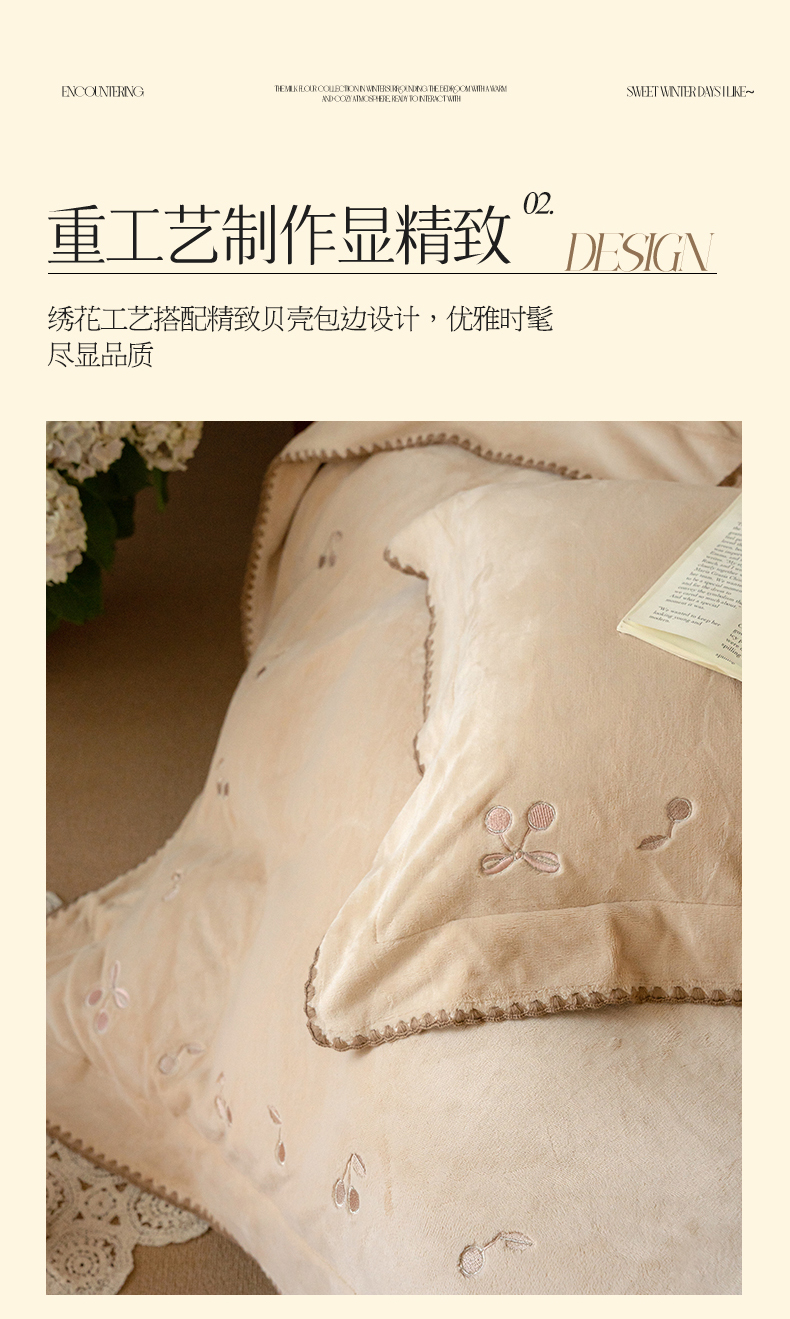 (总)名品优仓 2024新款高克重牛奶绒绣花四件套-樱桃之玥