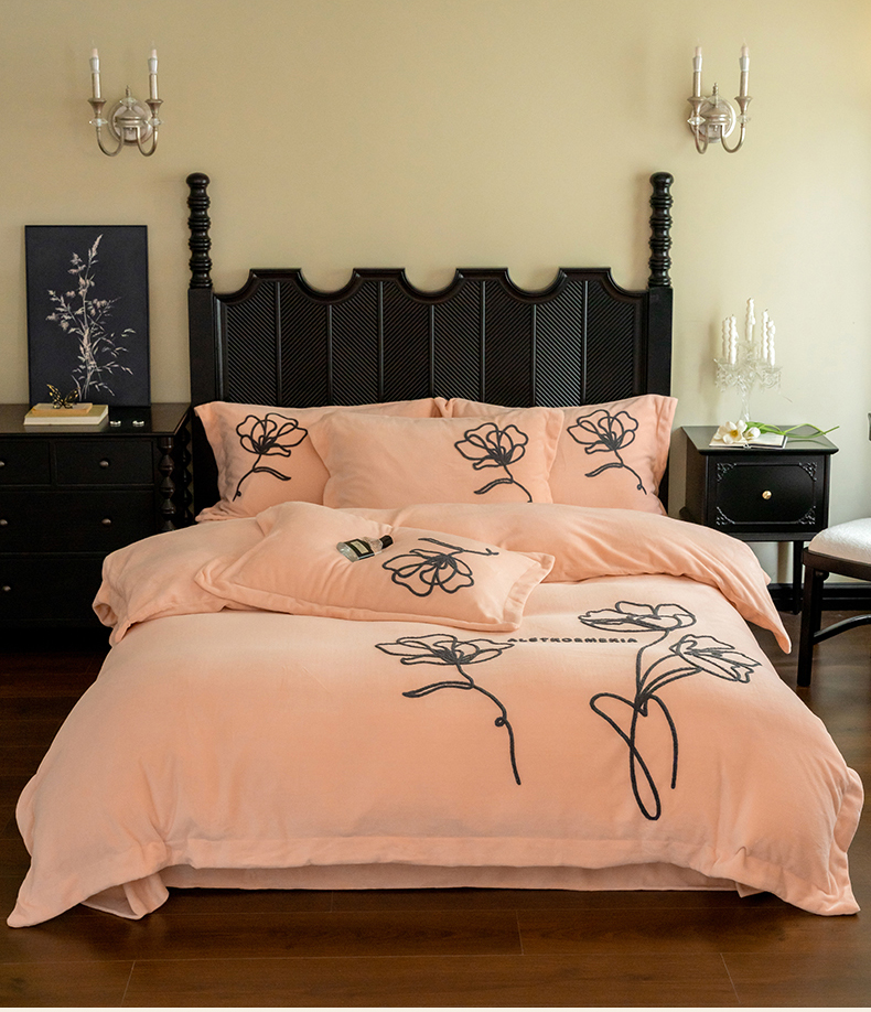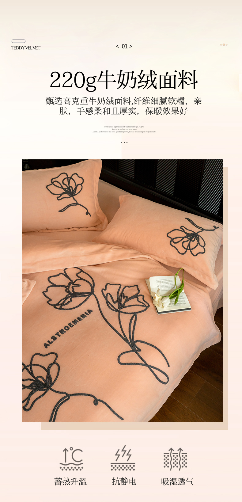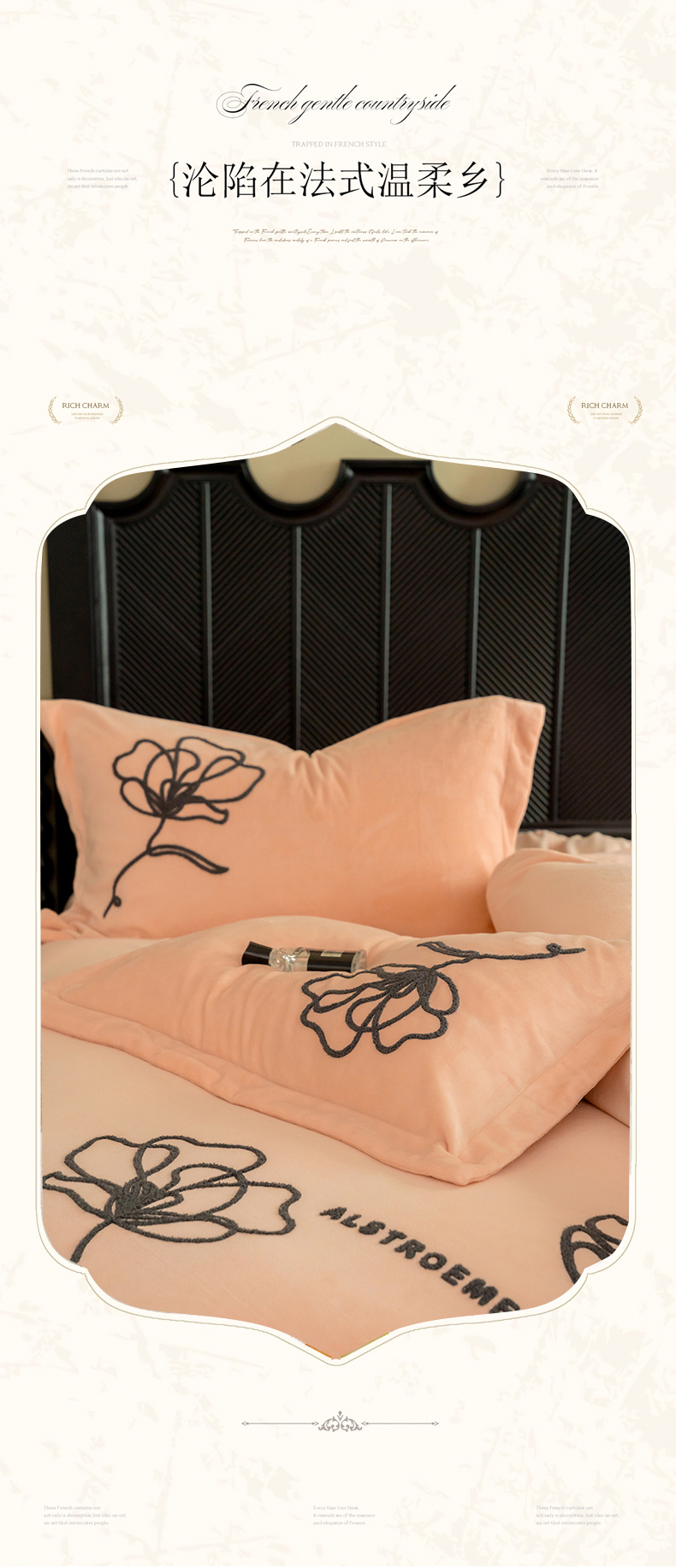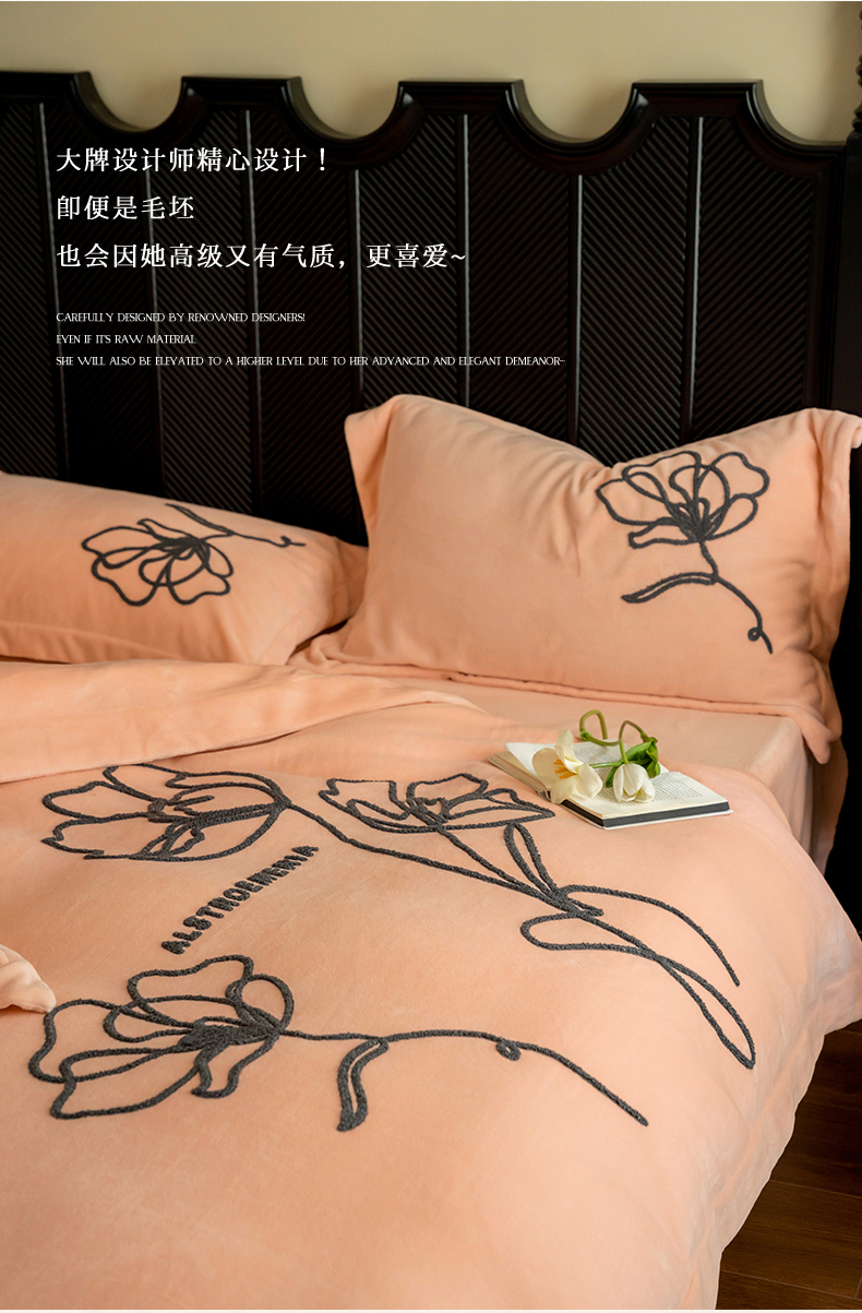 (总)名品优仓 2025新款220克牛奶绒绣花四件套-珊瑚,珊瑚-宝石蓝,珊瑚-粉色,珊瑚-姜黄,珊瑚-米杏,珊瑚-沫粉,珊瑚-杏粉