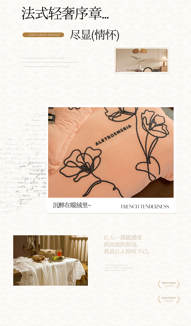 (总)名品优仓 2025新款240克奶肤绒刺绣四件套-丽莎,丽莎-粉色,丽莎-姜黄,丽莎-米杏,丽莎-沐粉,丽莎-深卡