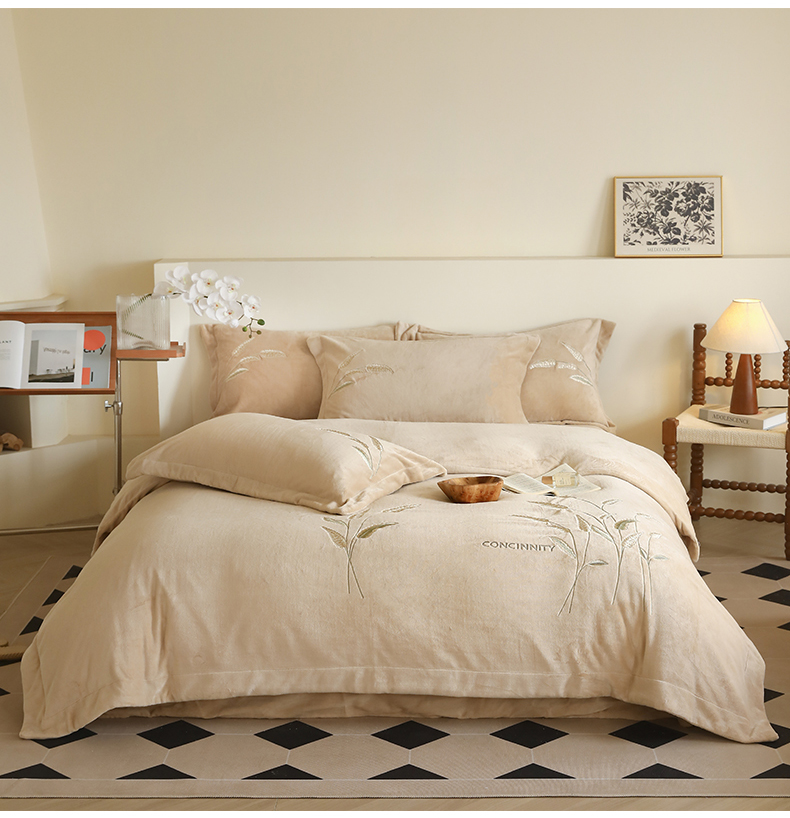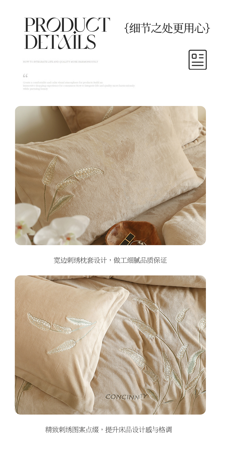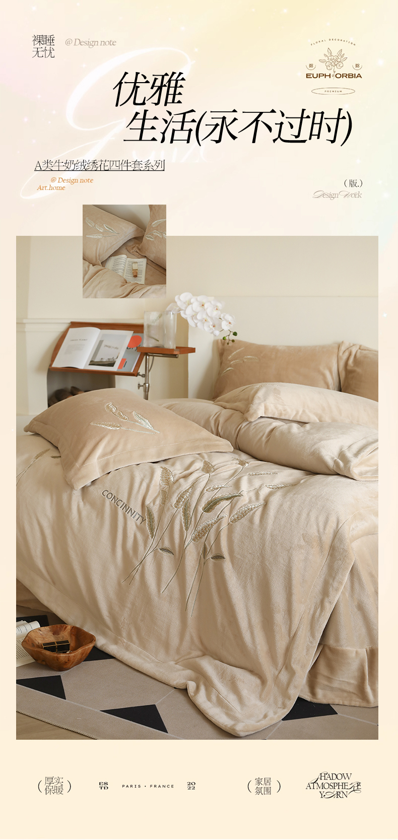 名品优仓 2024新款牛奶绒绣花四件套-麦穗 麦穗-奶茶