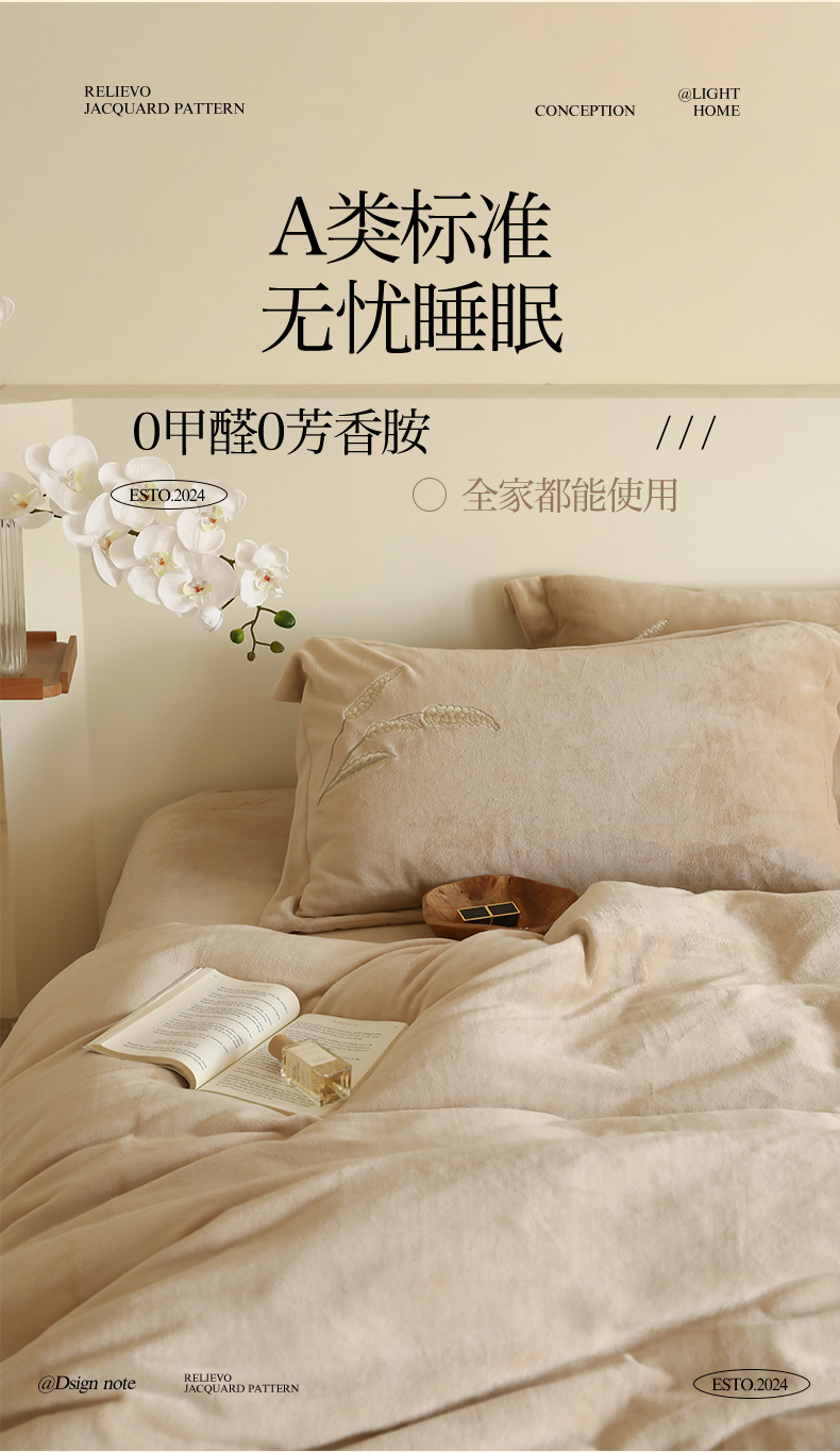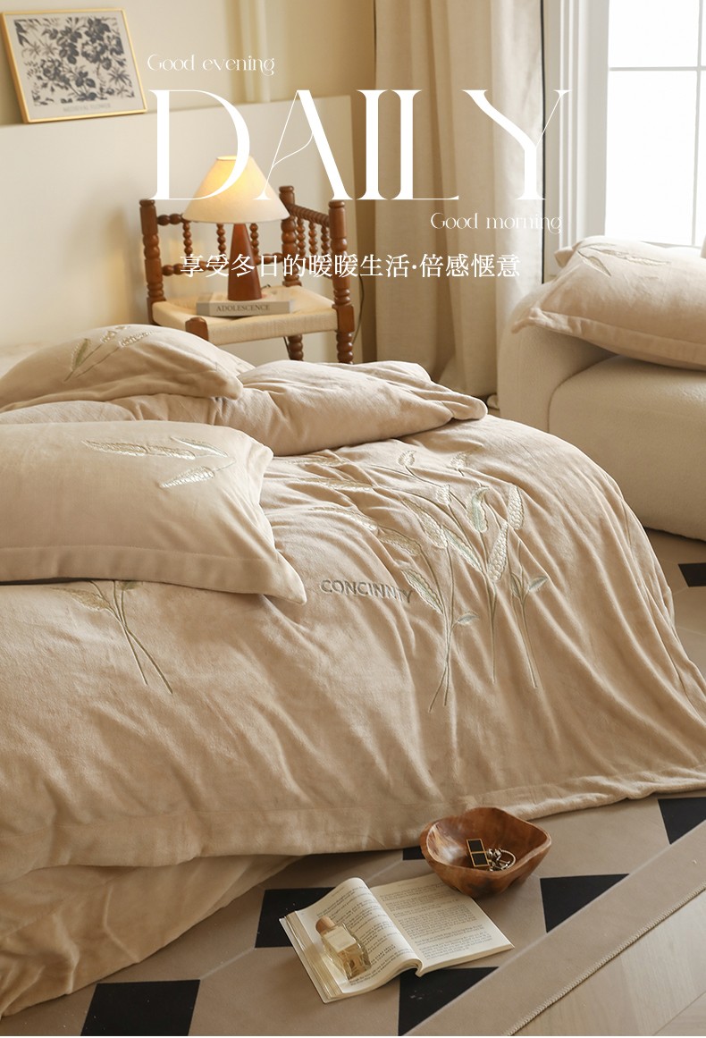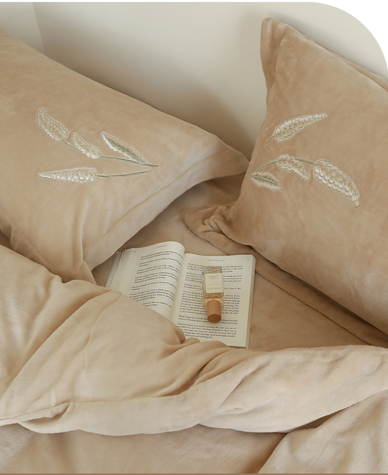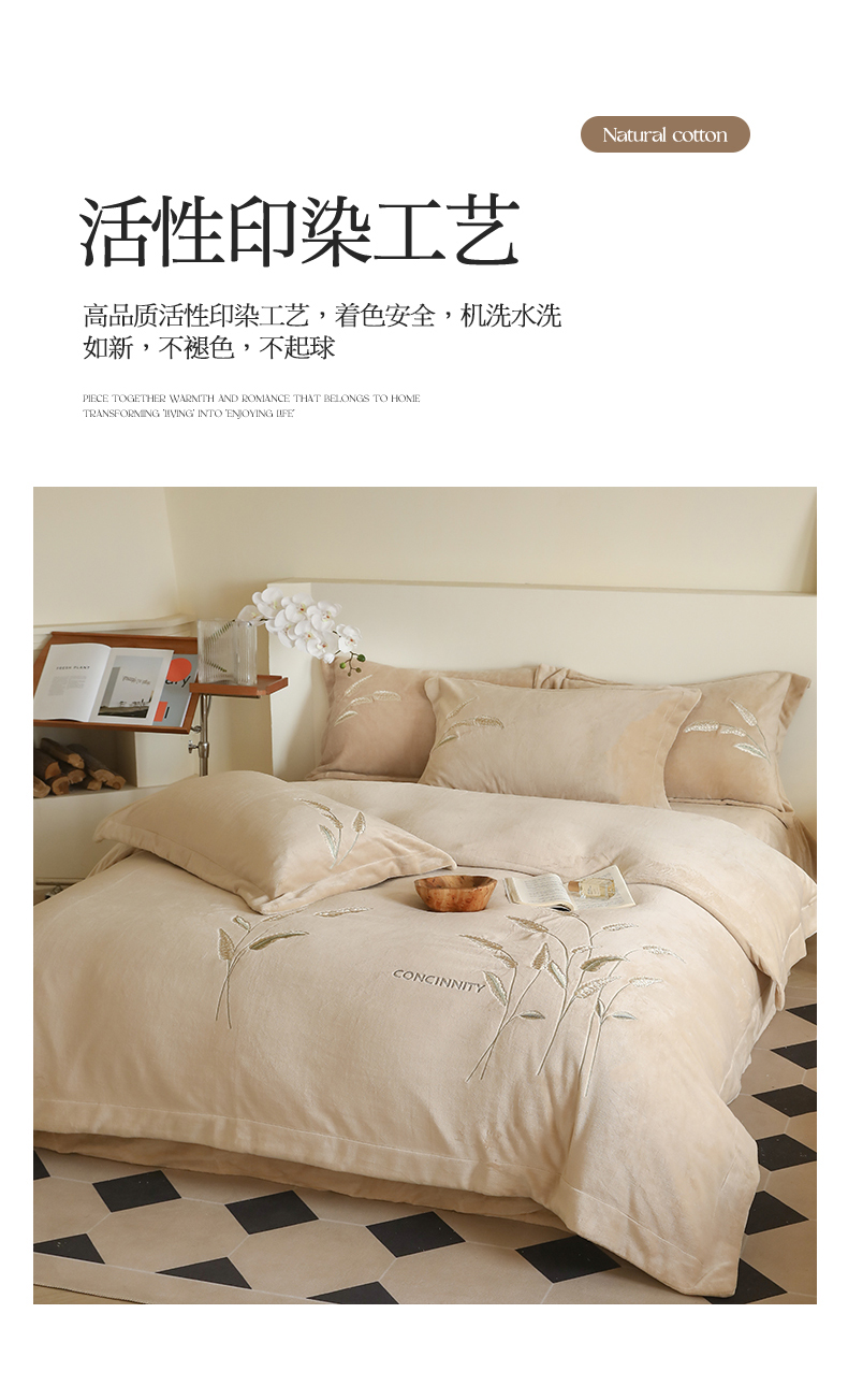 名品优仓 2024新款牛奶绒绣花四件套-麦穗 麦穗-奶茶