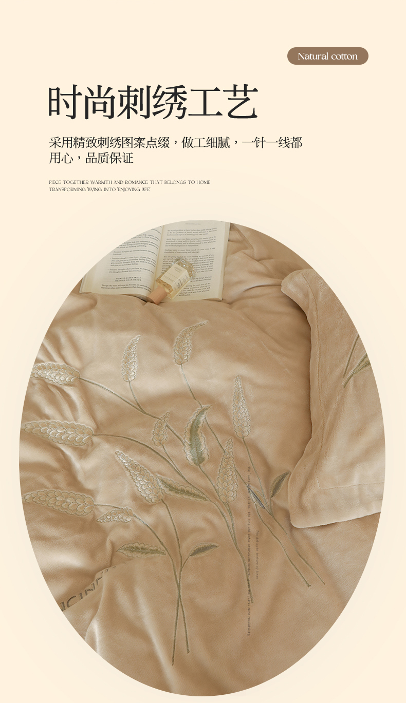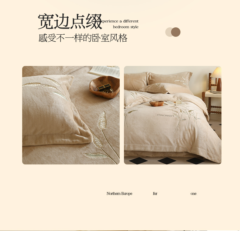 商品名称:名品优仓 2024新款牛奶绒绣花四件套-麦穗 麦穗-奶茶