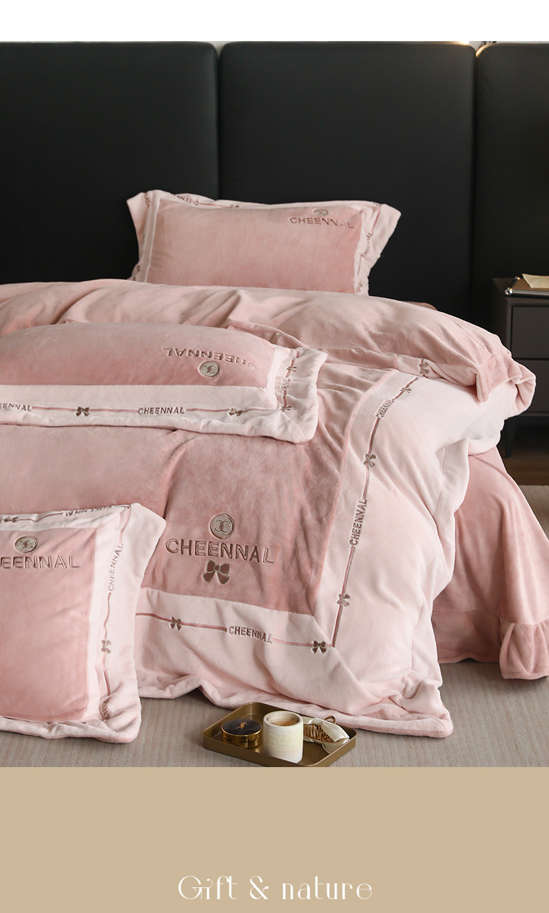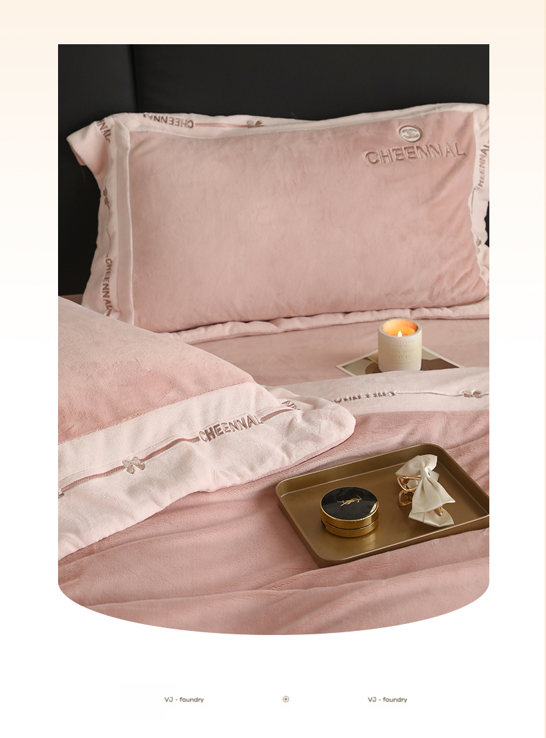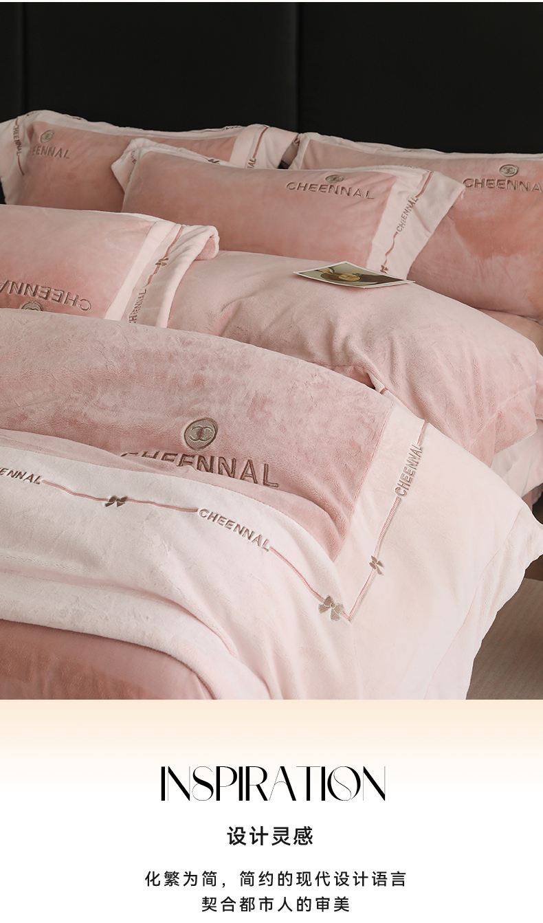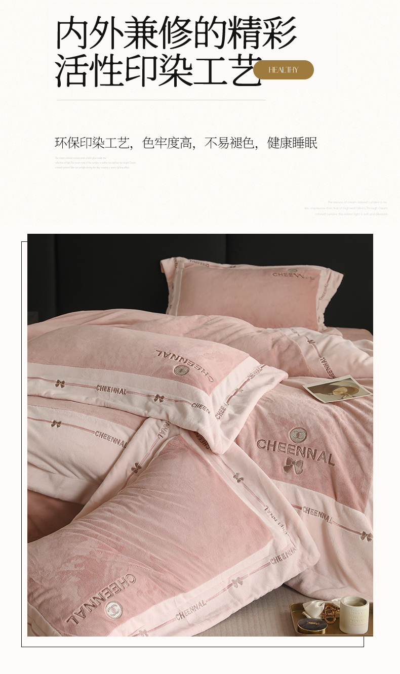 商品名称:名品优仓 2024新款高克重高克重牛奶绒四件套-希娜尔 希娜尔-月光粉