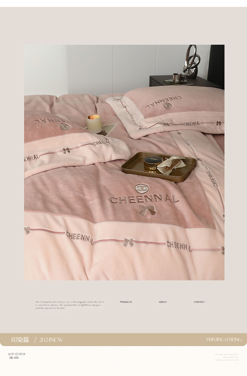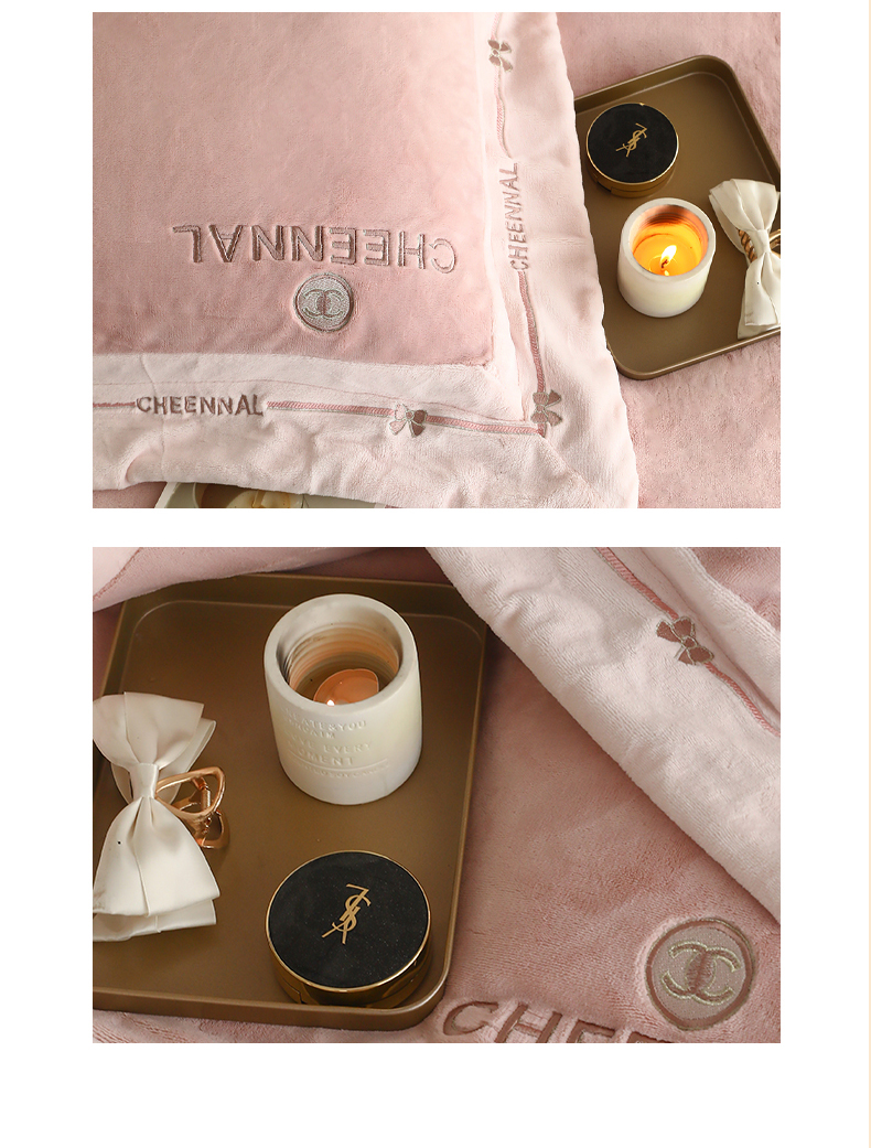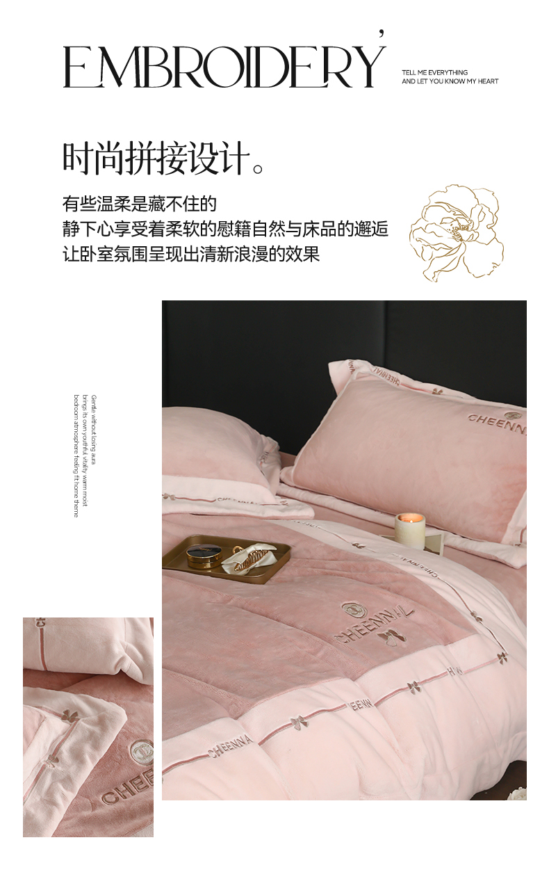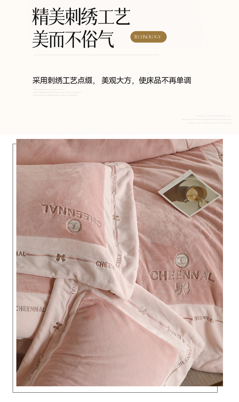 商品名称:名品优仓 2024新款高克重高克重牛奶绒四件套-希娜尔 希娜尔-月光粉