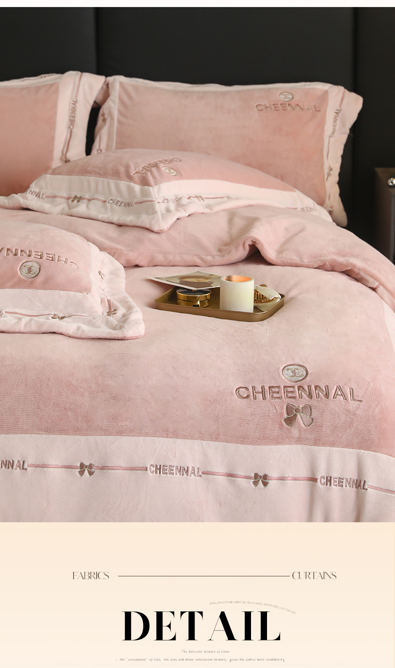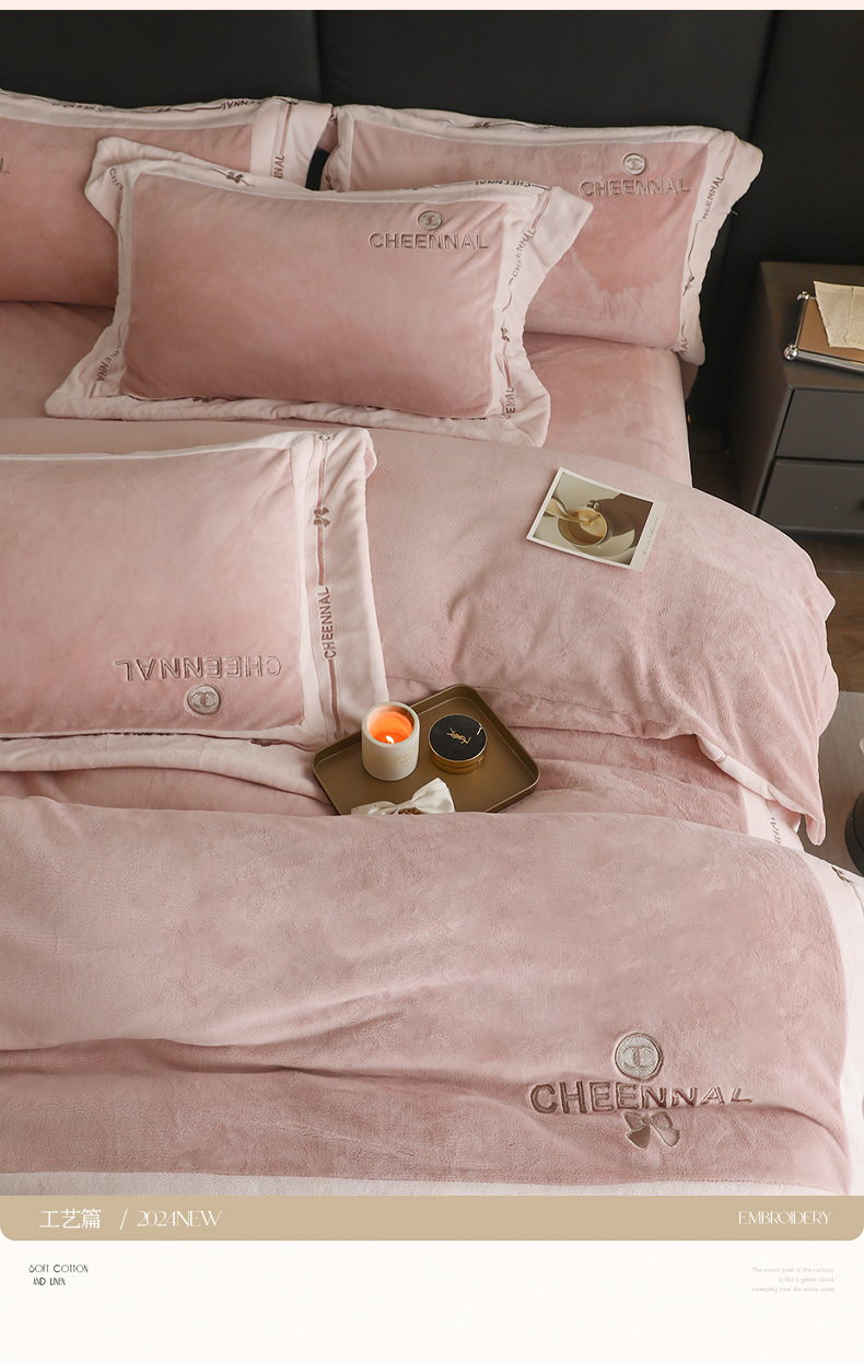 名品优仓 2024新款高克重高克重牛奶绒四件套-希娜尔 希娜尔-月光粉