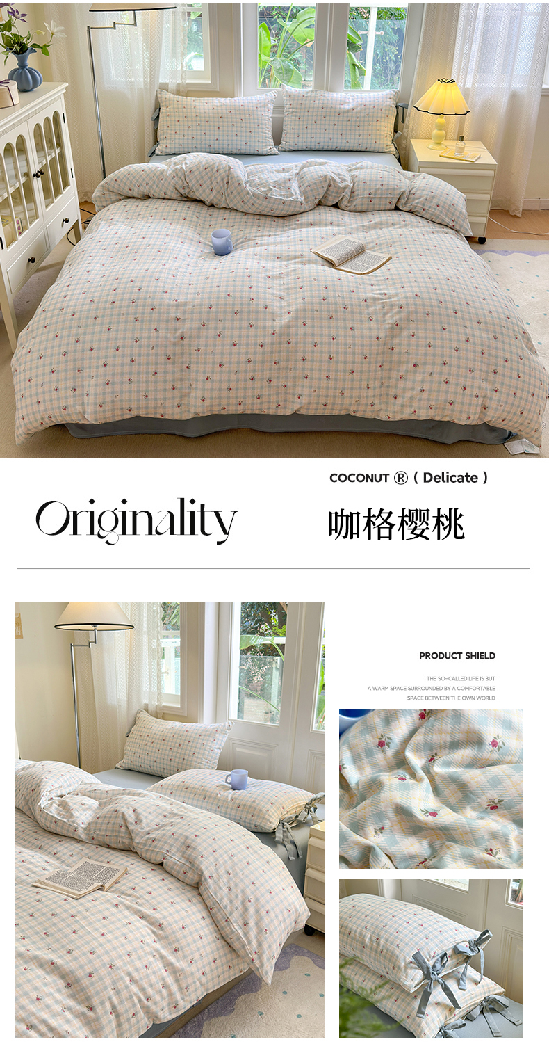 当前位置: 91家纺网 > 商品网购 > 床品套件 > 四件套 > 全棉普通四件套 > 2024秋冬新款系带格子双层纱四件套 蓝格花