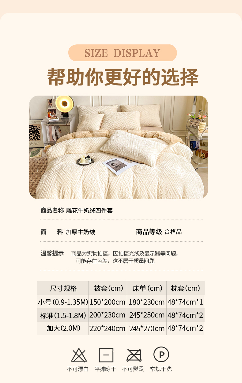 商品名称:(总)沐晴家纺 2024秋冬新款雕花牛奶绒纯色简约轻奢四件套