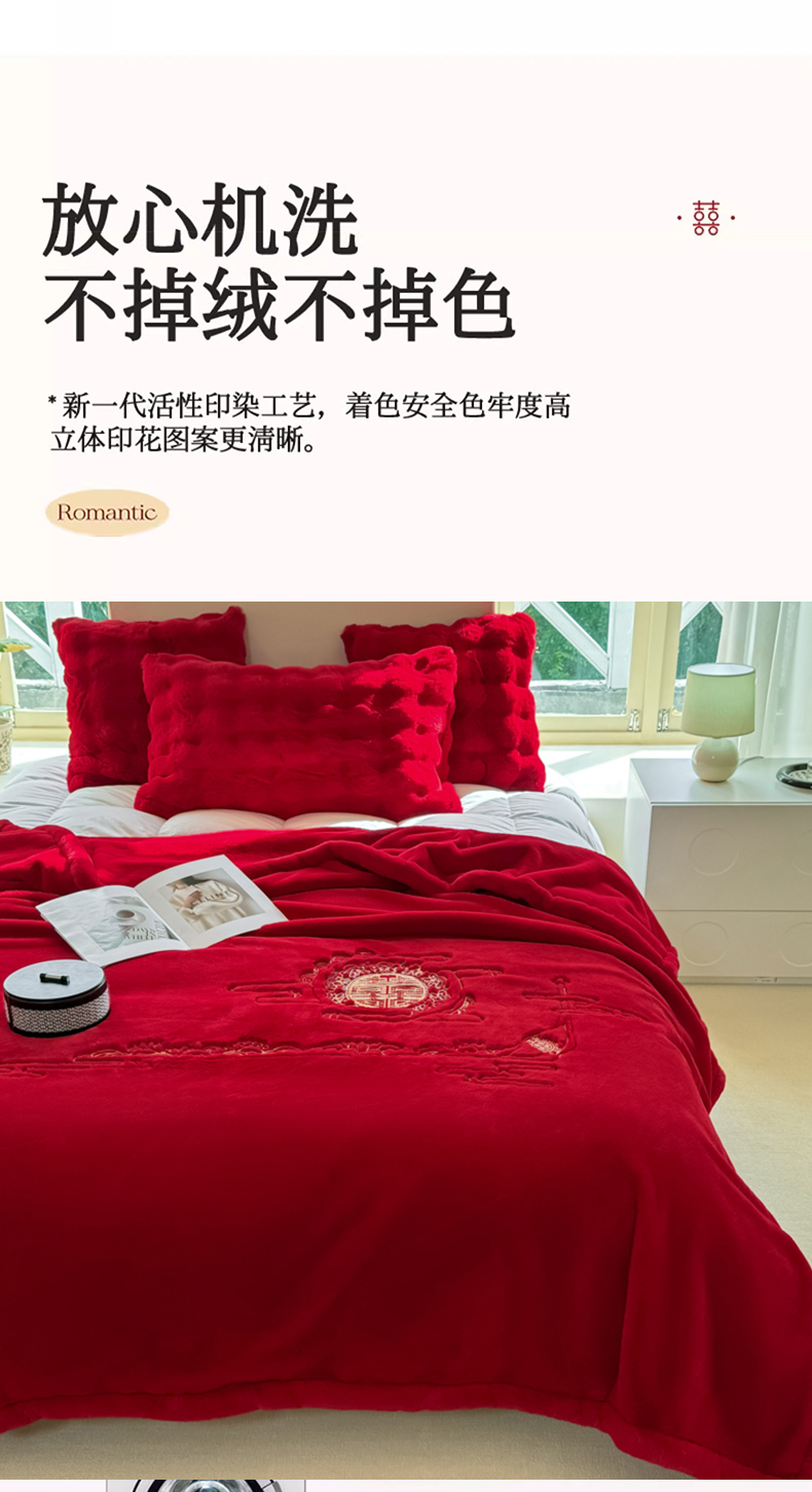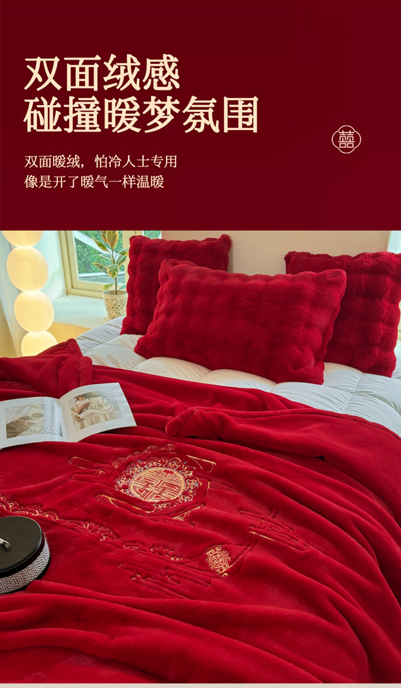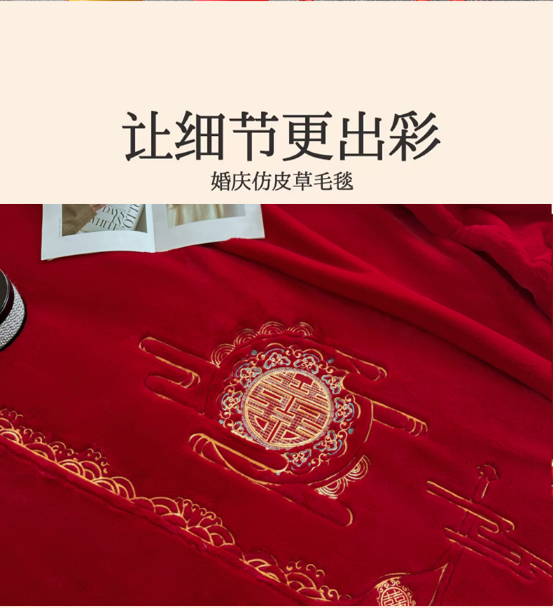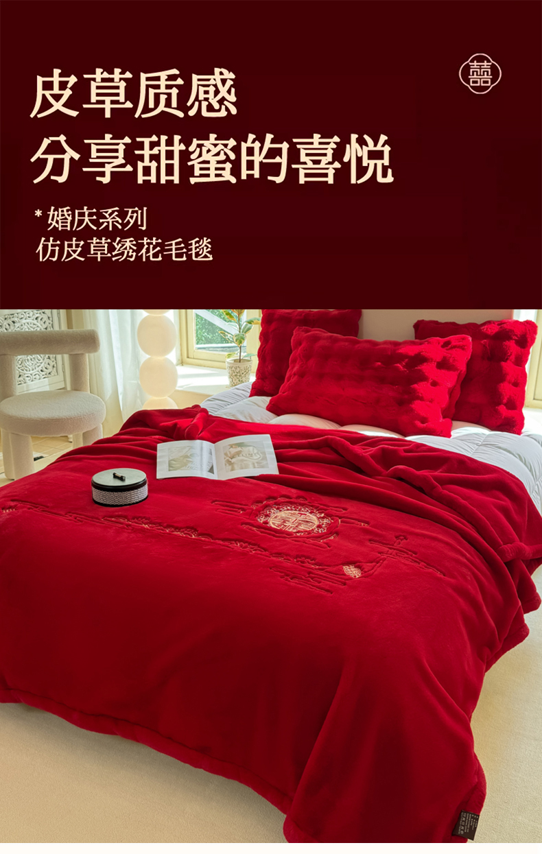 商品名称:悦织湾家纺 2025新款轻奢仿兔毛绒仿裘皮仿皮草绣花毛毯 百年好合