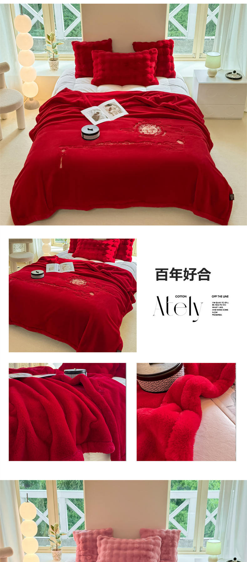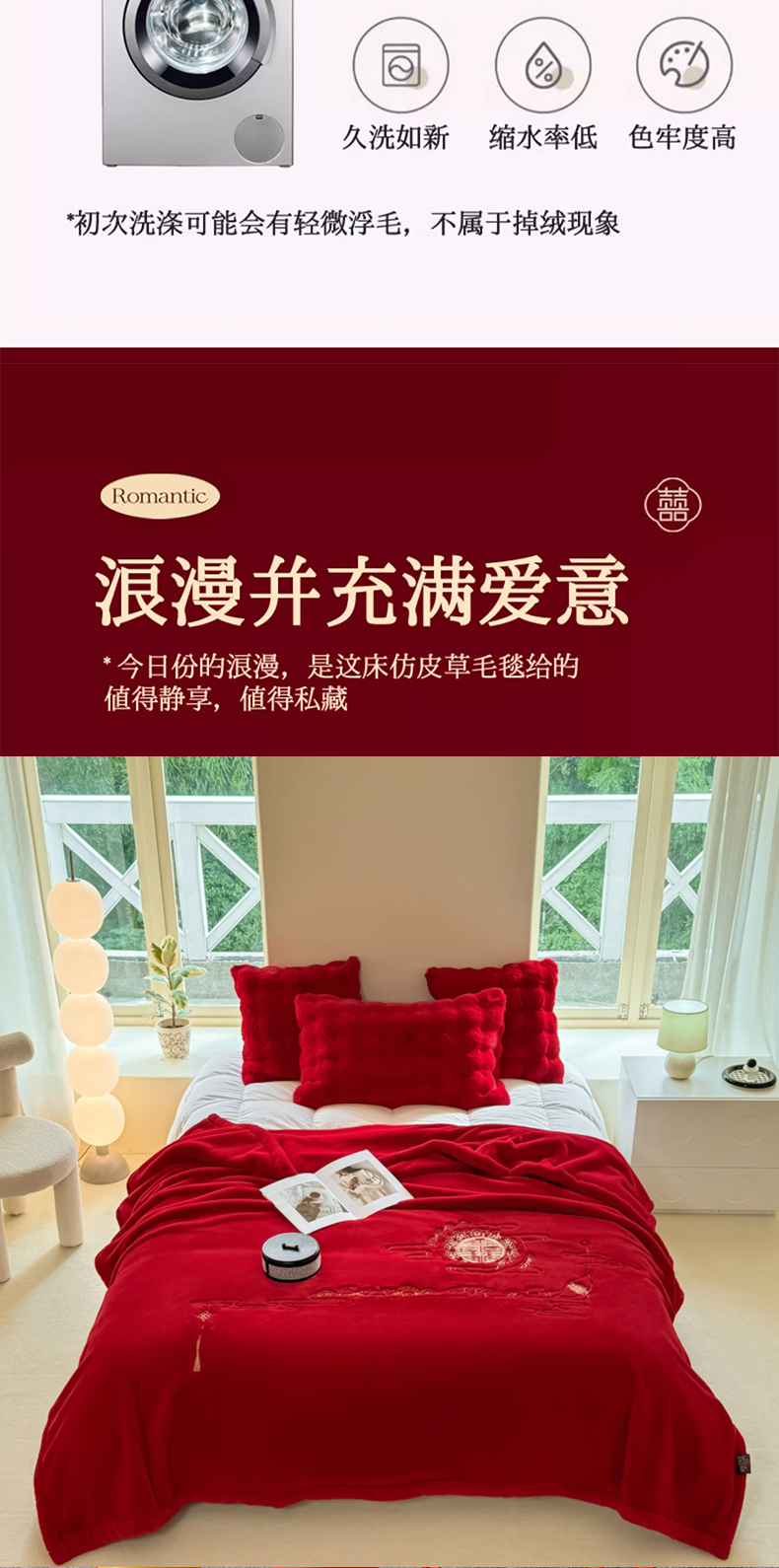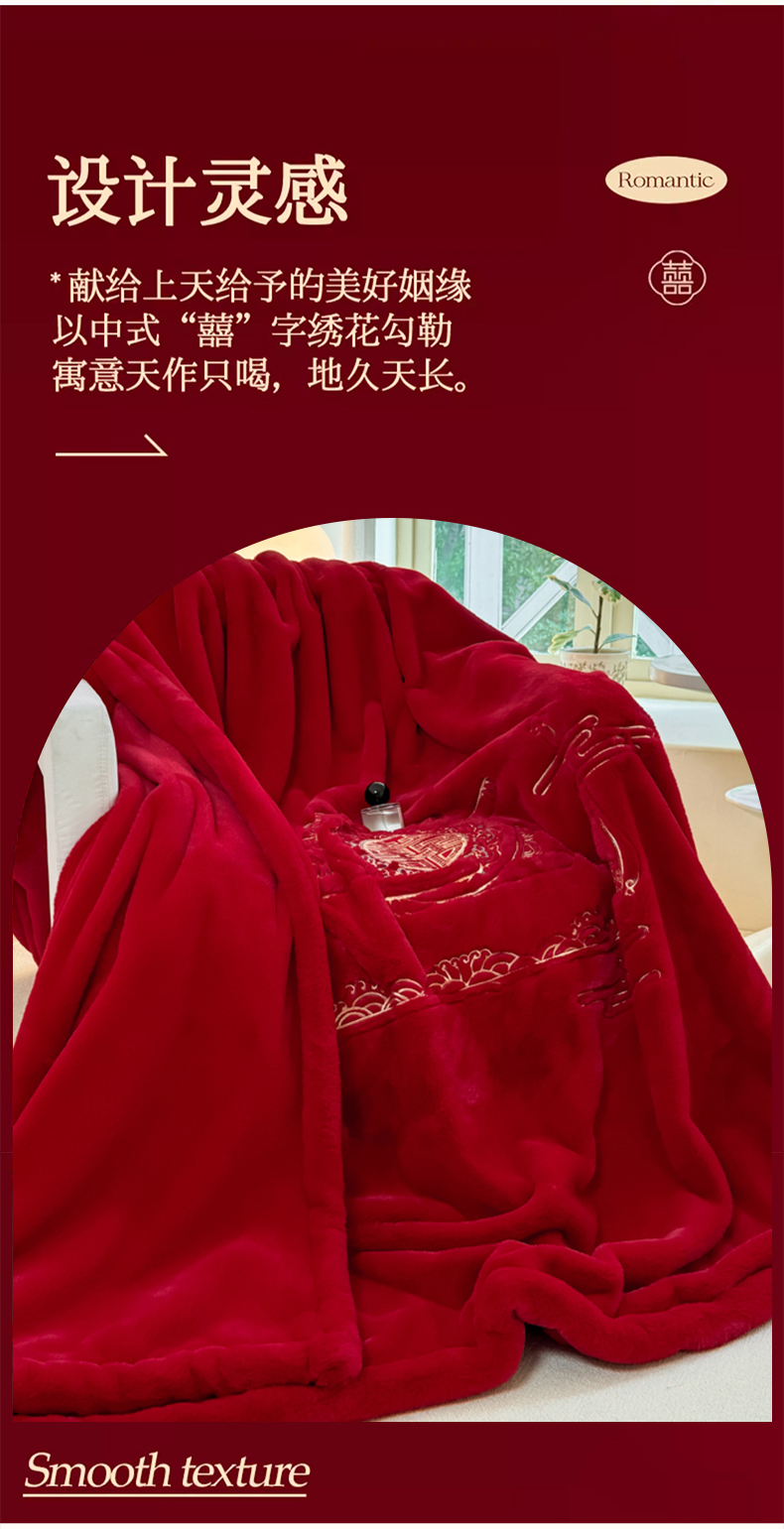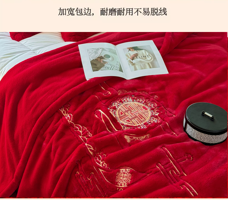 商品名称:悦织湾家纺 2025新款轻奢仿兔毛绒仿裘皮仿皮草绣花毛毯 百年好合